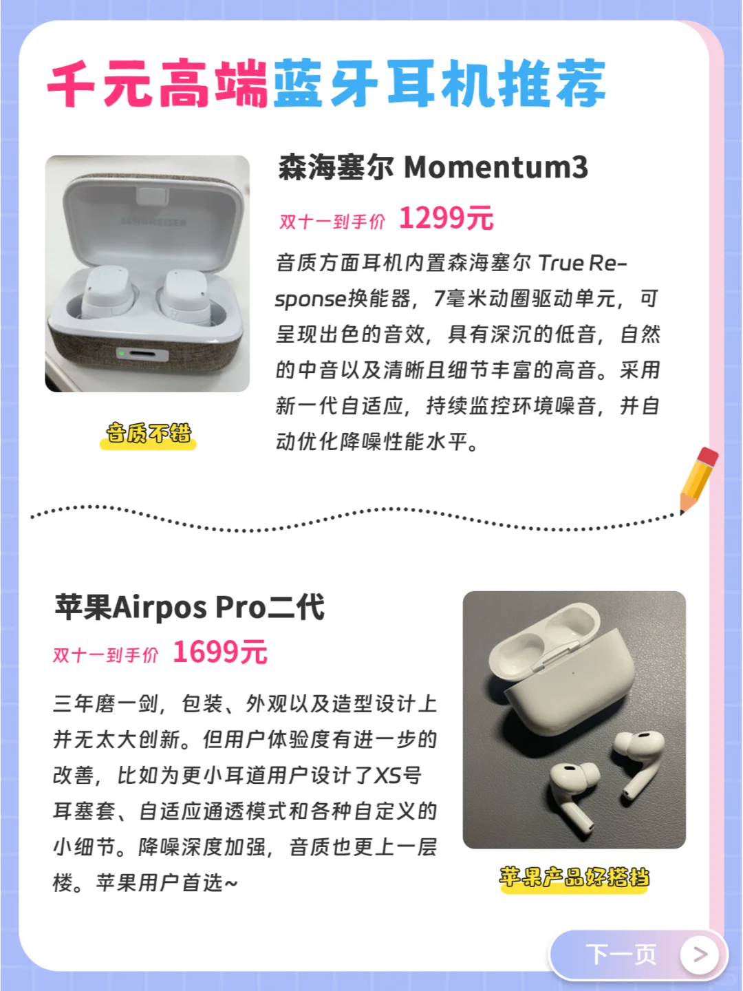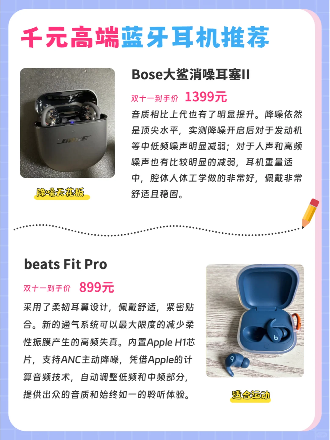 ⭐双十一期间,高端耳机的优惠力度相对来说更大一些,如果你对音质、降噪或者佩戴舒适度都有比较高的要求,预算也允许的情况下,真的建议可以买一款靠谱的高端蓝牙耳机试试,相比几百元的耳机体验会强上不少~