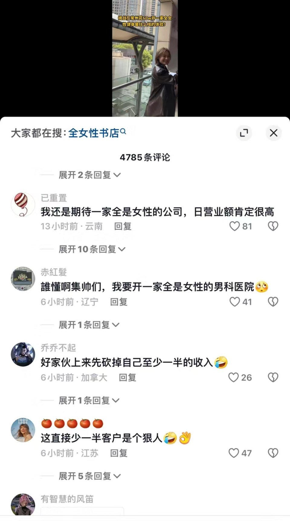 酒酿圆子 4 2024-04-12 21:24 全女确实挺离谱的,粉红税一样,你开全女健身房,就是在把去公共健身房的权利让渡给男性,没必要整这些花里胡哨的 胖猫跳水a水花大 回复 04-25 05:23 你也可以开一家全男健身房啊……