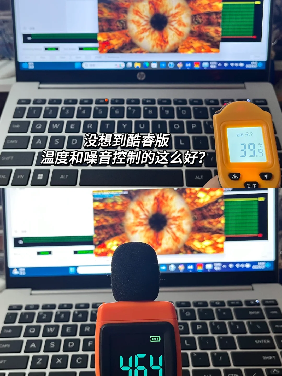 单烤30分钟,没有出现蓝屏死机现象,表面温度最高为39.9° 最大噪音为46.4分贝,温度不高也很静音🤝