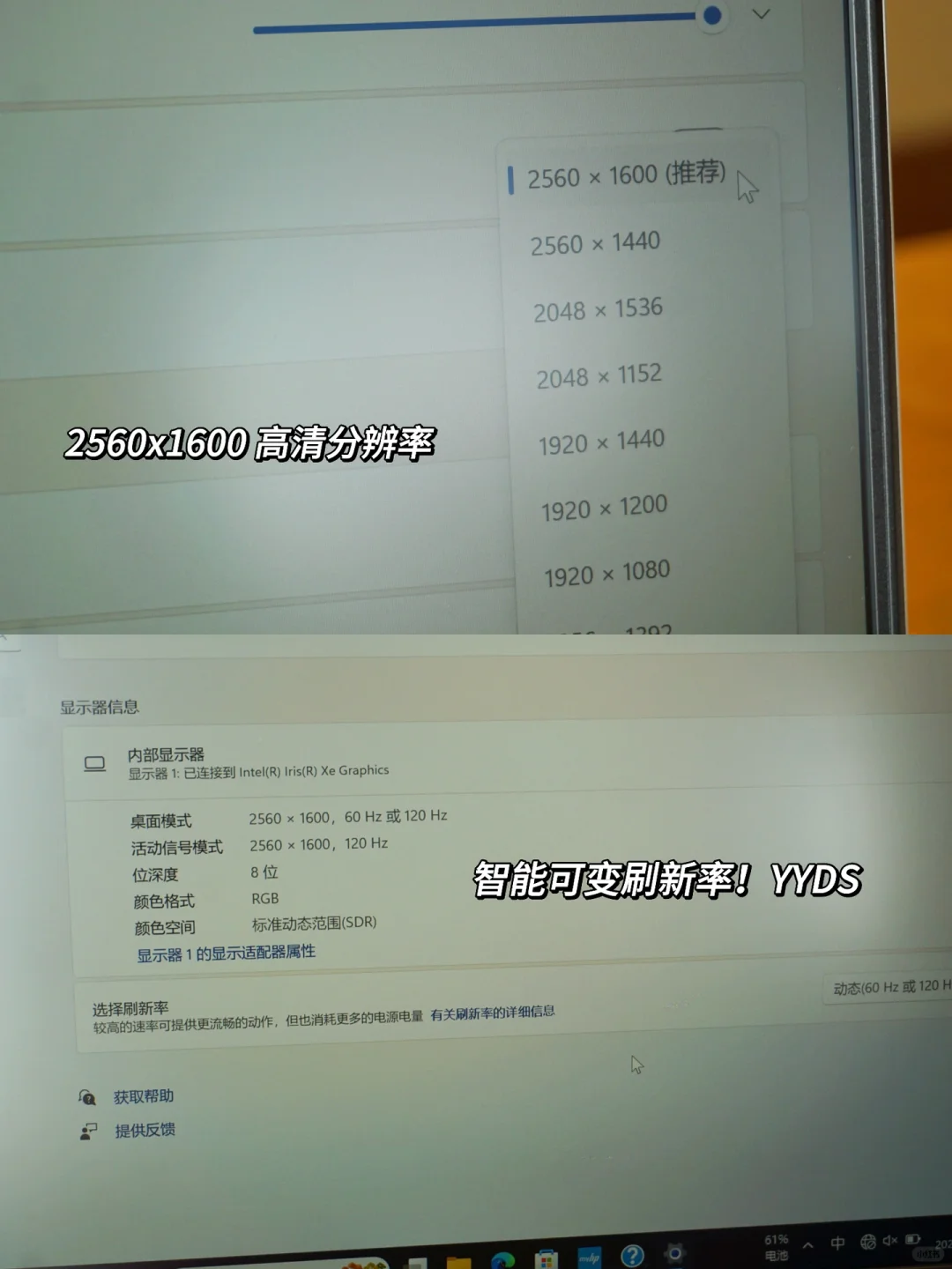 🌟屏幕是2.5K+120Hz高刷、100%sRGB高色域的屏幕,LCD+低蓝光设计,不费眼,这就很适合办公人士长时间使用了,自适应刷新率,打游戏或者追剧的时候会自动切换到高刷,平时办公省电,自动切换60Hz就够用了💕
