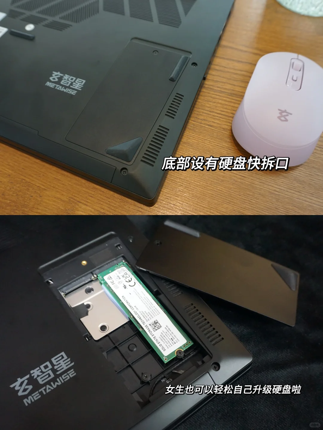 🌟优点:产品整体设计比较轻巧,16.1英寸只有1.8kg重量,厚度也只有17.9mm,大屏幕看着很爽,而且是DC调光的护眼屏,86%屏占比,性能强劲,7840H处理器,可流畅玩市面上的主流游戏(3A有点吃力),还可以支持65PD充电,ACD面均为金属材质,底部有M.2快拆口,后期升级方便