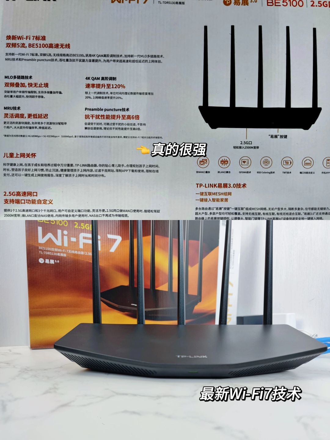 🌈最近为了提升作品质量与粉丝观感,氢源租了一个大概60平的小屋子专门做拍摄,因为场地平时也没人,所以就弄了个500M的宽带,基本上也能满足1-2人使用了,但是在选路由器的时候可犯了难,想买个全新的,两百多块钱能解决的,最好是每个角落都能有信号覆盖,于是我们最终选择了TP-LINK BE5100(TL-7DR5130)😍