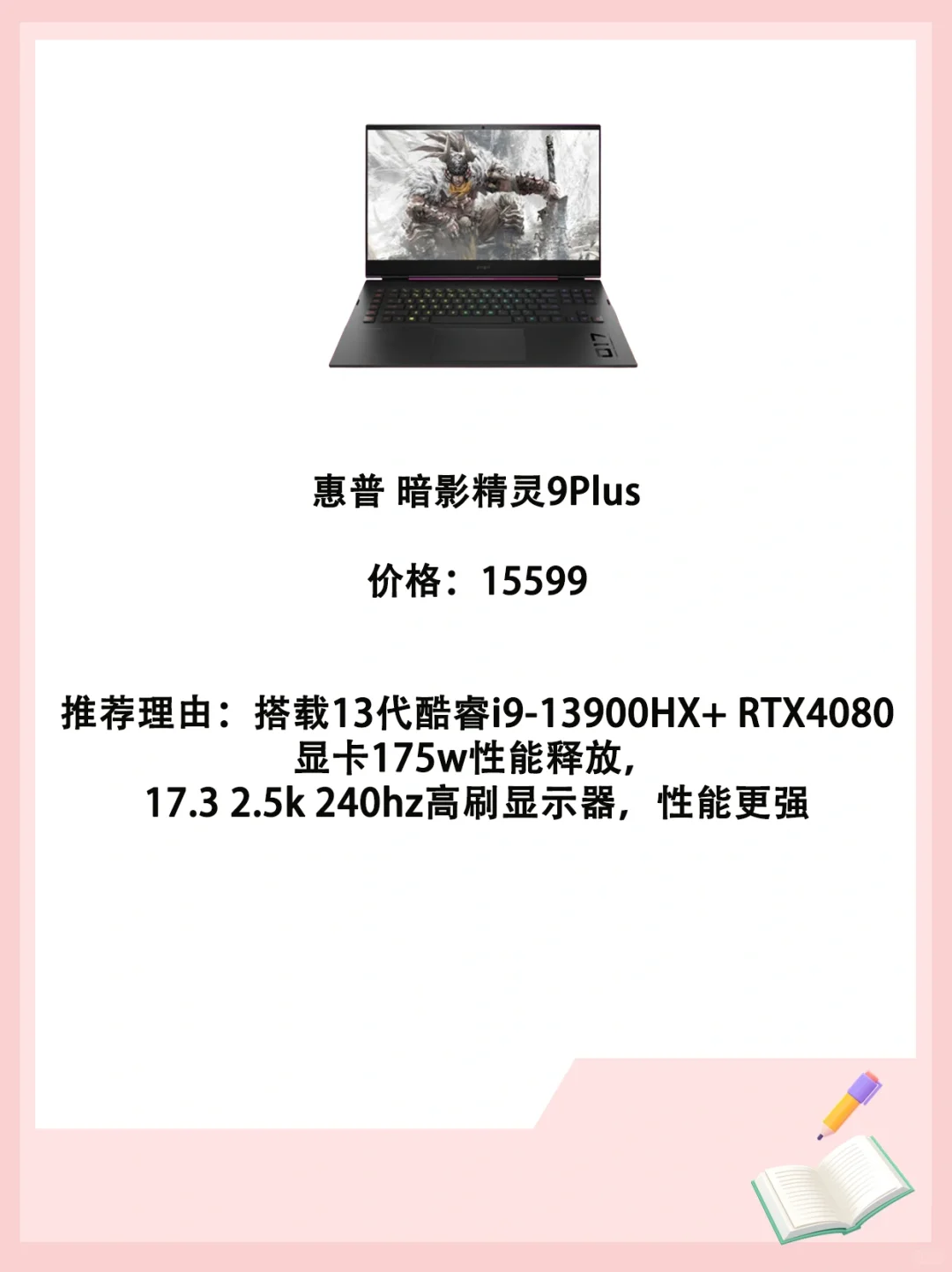 🌟推荐理由:搭载13代酷睿i9-13900HX+ RTX4080,显卡175w性能释放,17.3英寸 2.5k 240hz高刷显示器,性能更强💓💓
