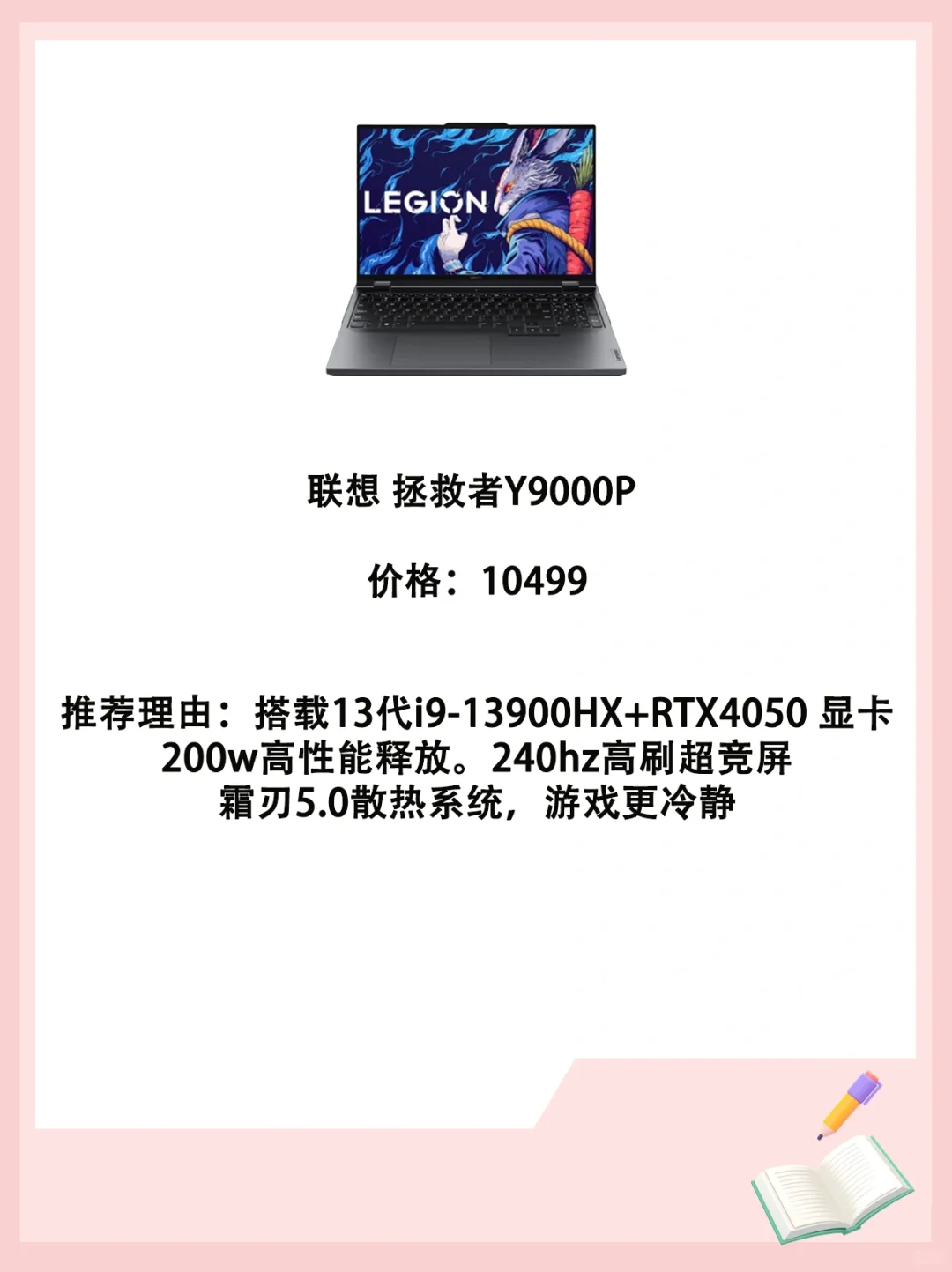 🌟推荐理由:搭载13代i9-13900HX+RTX4050 显卡,200w高性能释放。240hz高刷超竞屏,霜刃5.0散热系统,游戏更冷静💕