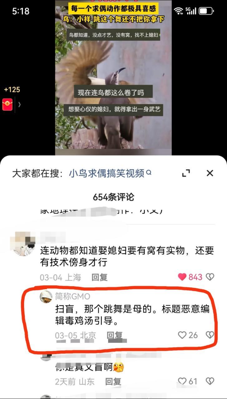 雄鸟跳舞求偶,不感兴趣就刷走呗,至于这么对号入座吗?[笑哈哈][阴险]