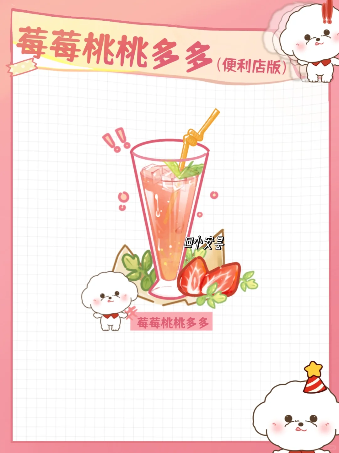 🍓莓莓桃桃多多🍑 (便利店版) 春风拂面,莓莓桃桃多多,喝的最佳时节啦!🍓 美好春天从一杯饮品开始! 大家还可以摆摊啦🔥 🥣材料准备 莓桃汁 ➕一瓶养乐多➕冰块🧊 🥣制作步骤 1⃣️首先,冰块7分满,装入杯里!(不爱吃冰的宝宝可以少加点) 2⃣️往杯里加入一半的莓桃汁🍑 3⃣️再加入1瓶养乐多,莓莓桃桃多多,搅拌均匀,就完成了!
