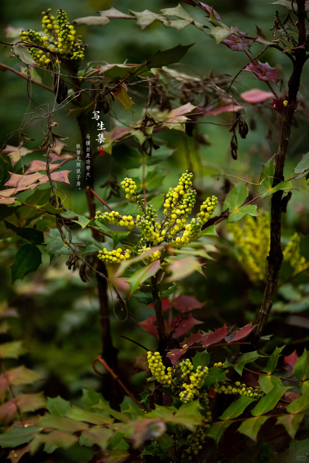 马援自是功劳大, 铁笛无烦说子房。 ———— 十大功劳(Mahonia fortunei (Lindl.) Fedde),小檗科十大功劳属常绿灌木植物。 ———— 这种植物的全株树、根、茎、叶均可入药,且药效卓著。依照中国人凡事讲求好意头的习惯,便赋予它“十”这个象征完满的数字,因而得名。 ———