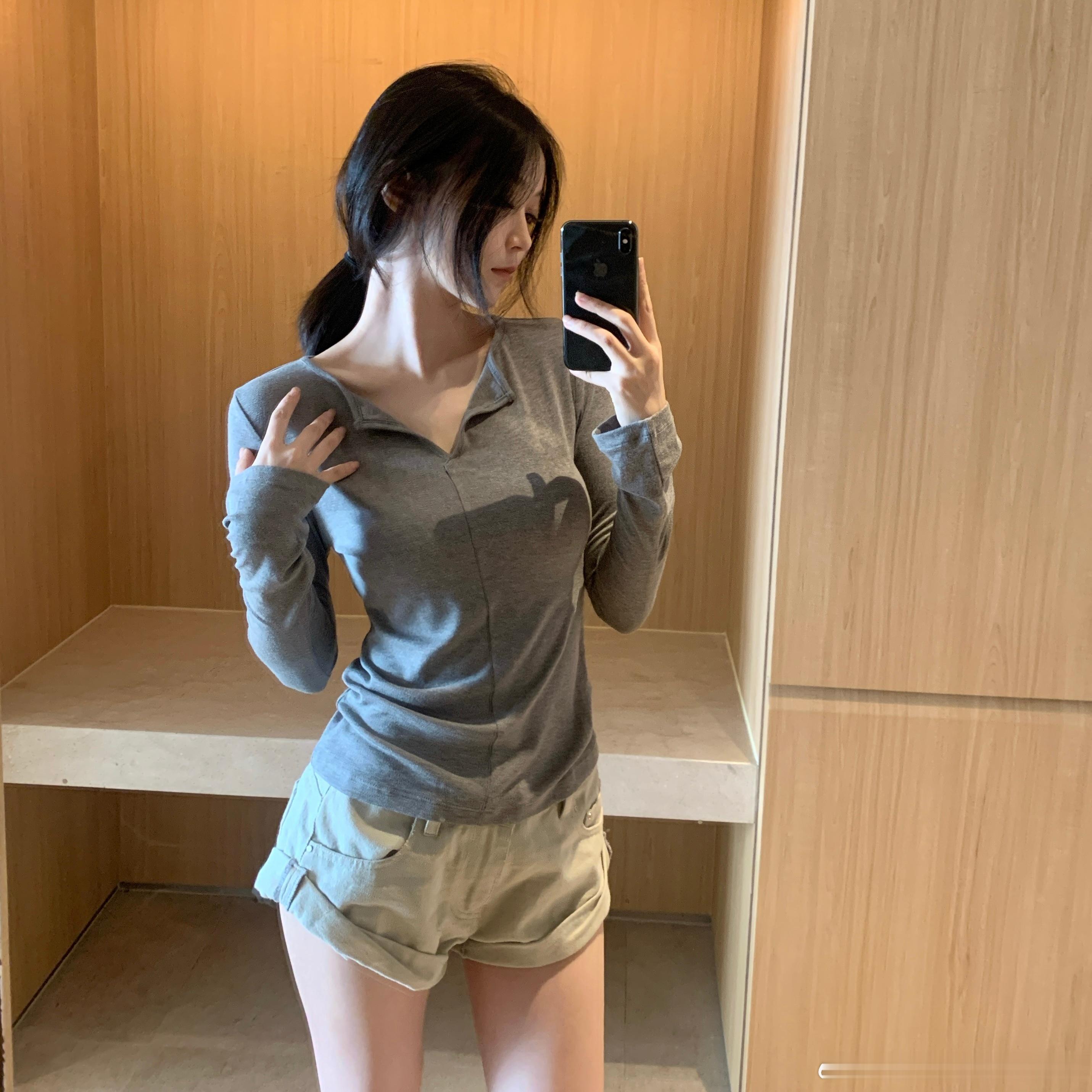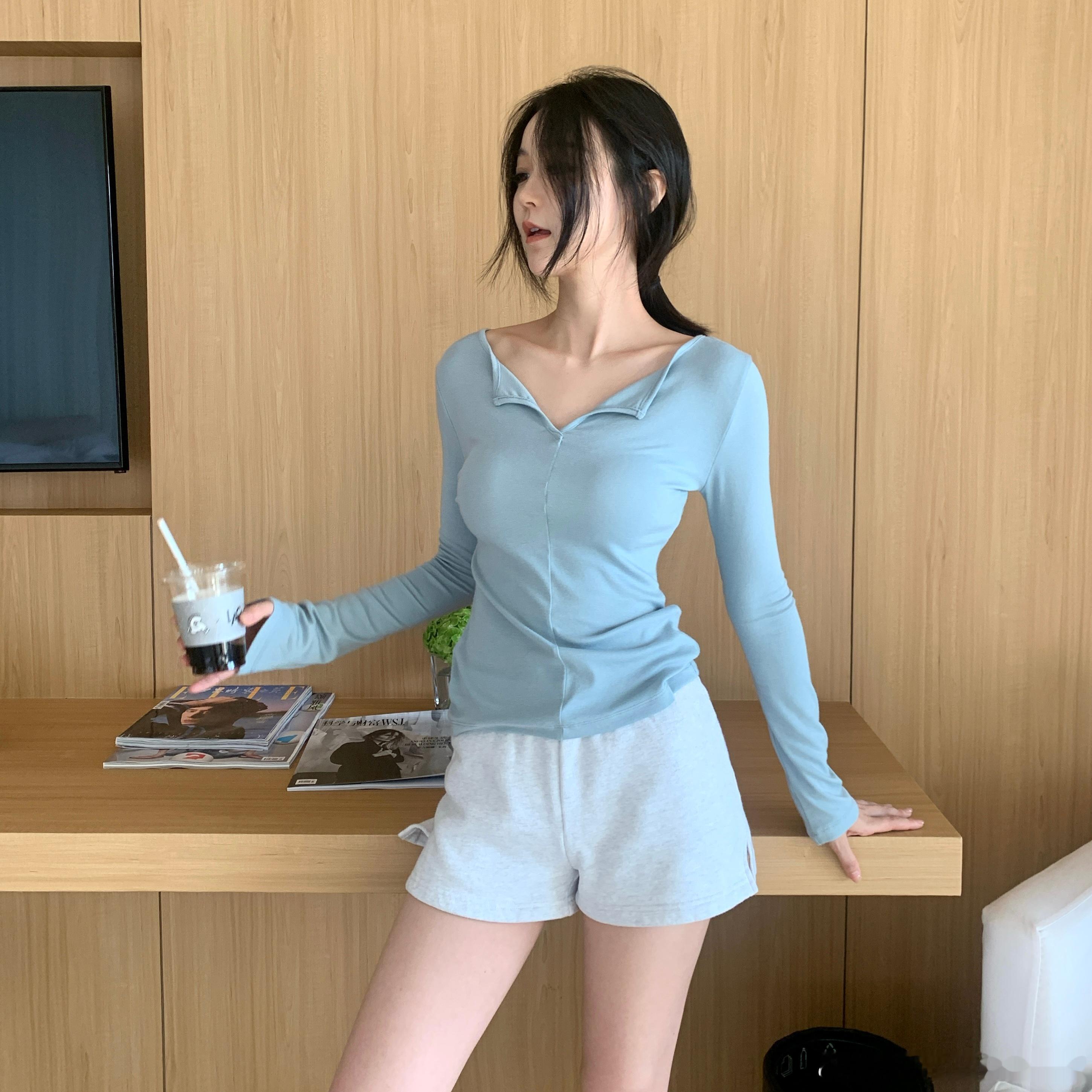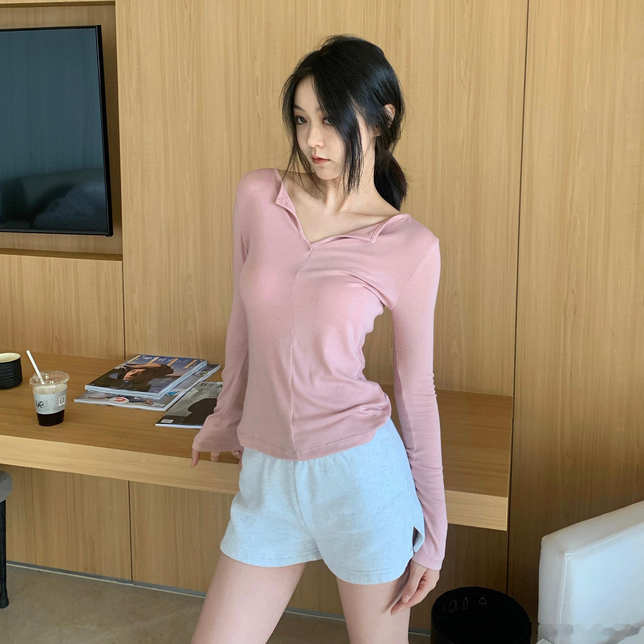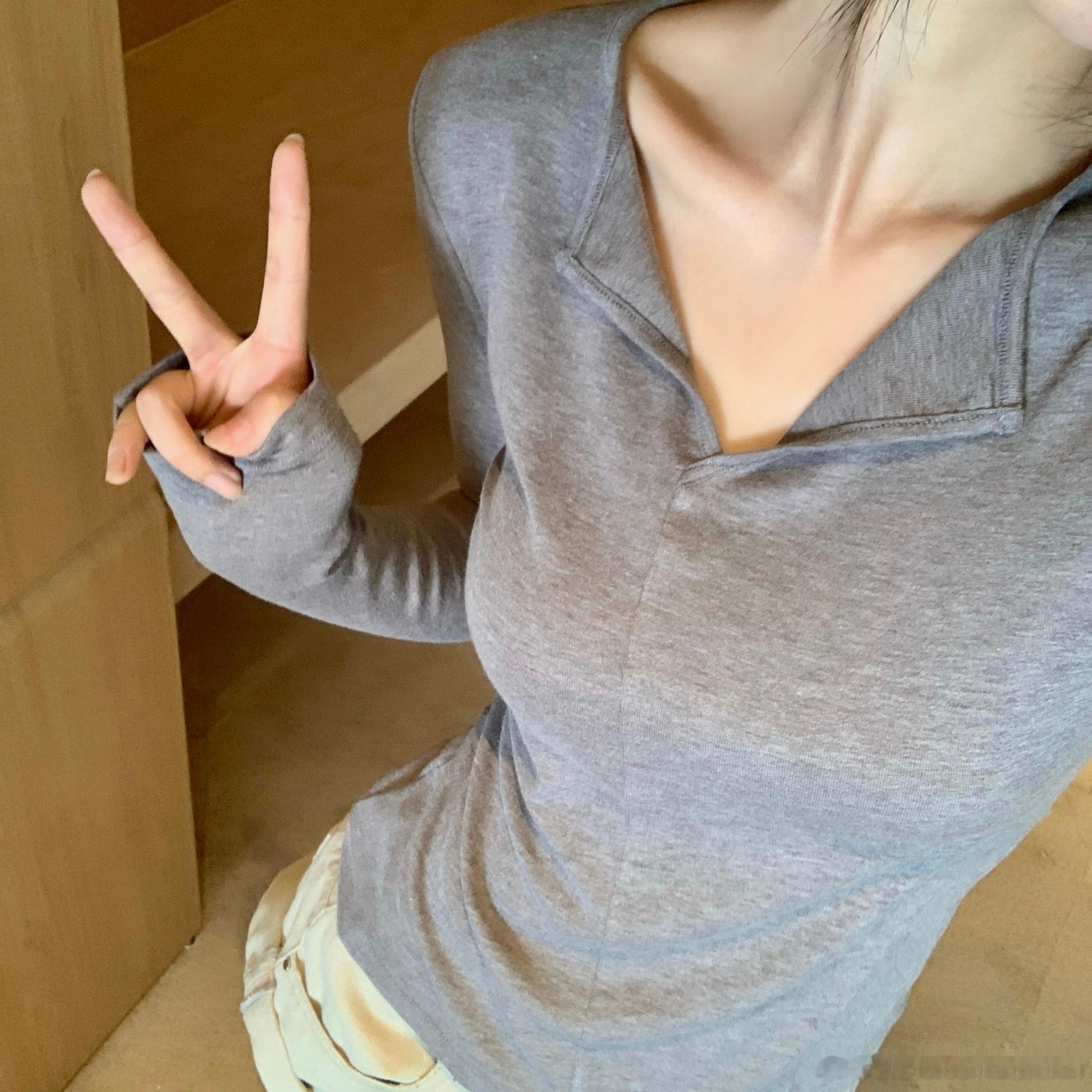 自在慵懒的小翻领设计 穿出小V领的感觉 露出锁骨 拉长颈部线条 很显瘦