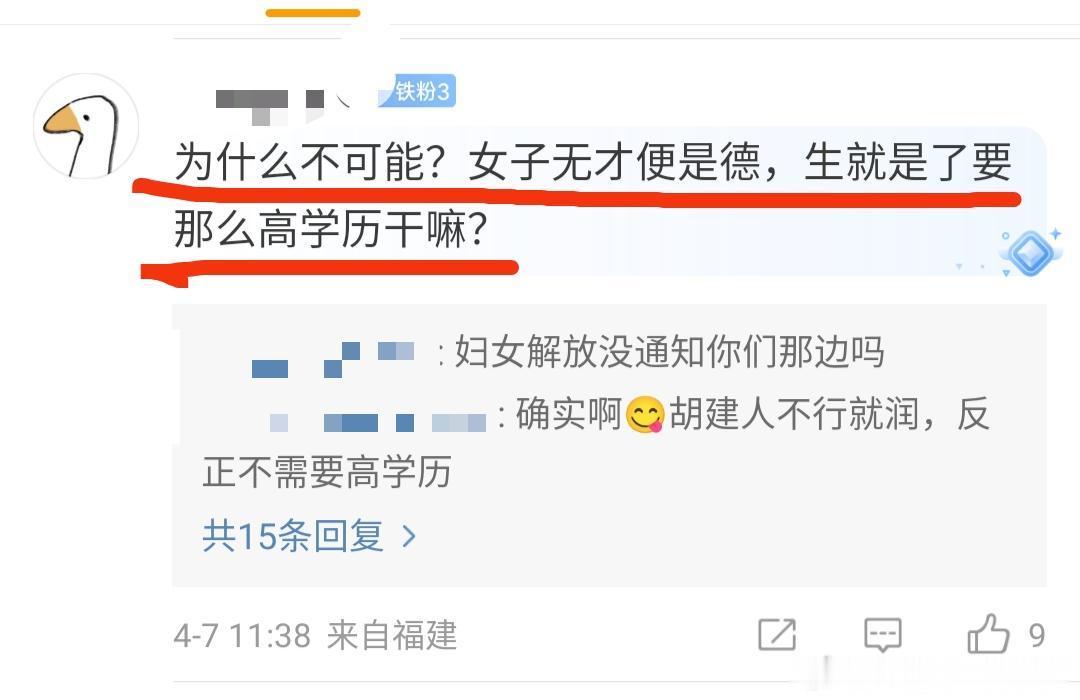 “女子无才便是德,生了就行,要那么高学历干嘛?”