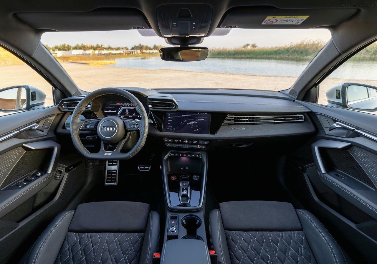 【第二季度上市 新款奥迪S3家族官图发布】新车外观延续了新款奥迪A3的变化,不过格栅内部并未配备S3徽章,稍显低调。车尾配备双边共四出式排气布局,中央拥有类似扩散器的设计。内饰采用奥迪最新的虚拟座舱设计风格,中央10.1英寸中控屏内置最新的娱乐系统。搭载2.0T发动机,最大功率333马力,峰值扭矩420牛·米,0-100km/h加速4.7秒。#德系车#【来自懂车帝车友圈】