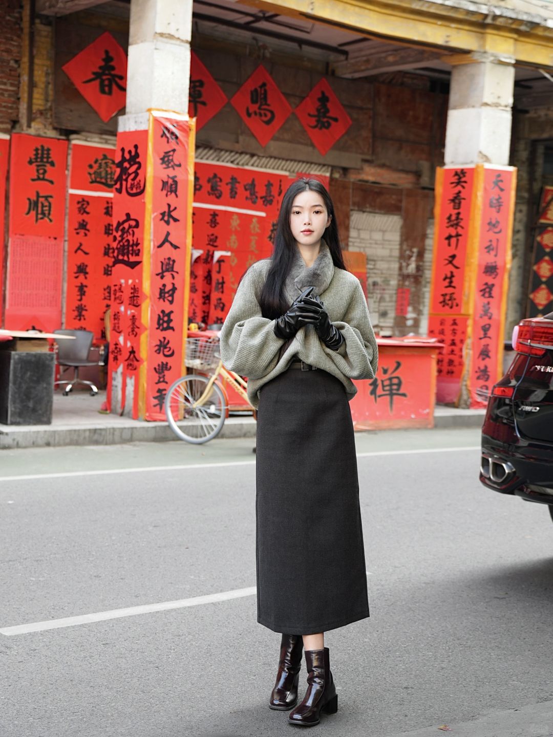 黑色皮质连体裙勾勒利落线条,过膝皮靴踩出酷飒气场,简约背景里尽显冷艳魅力。高级