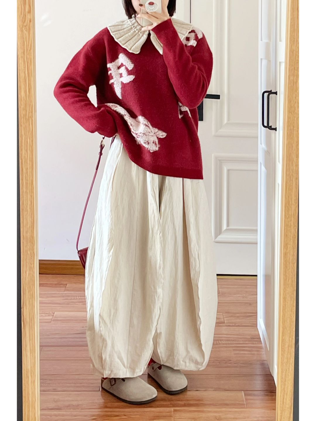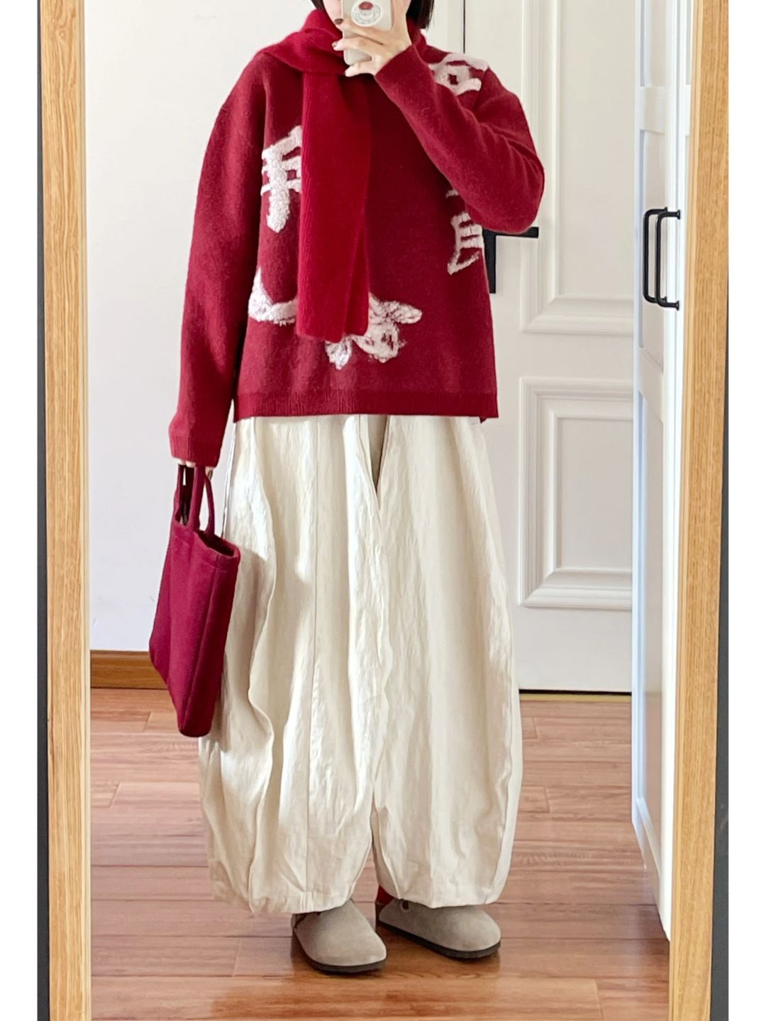毛衣 毛衣搭配 红色毛衣 秋冬毛衣 绽放女装