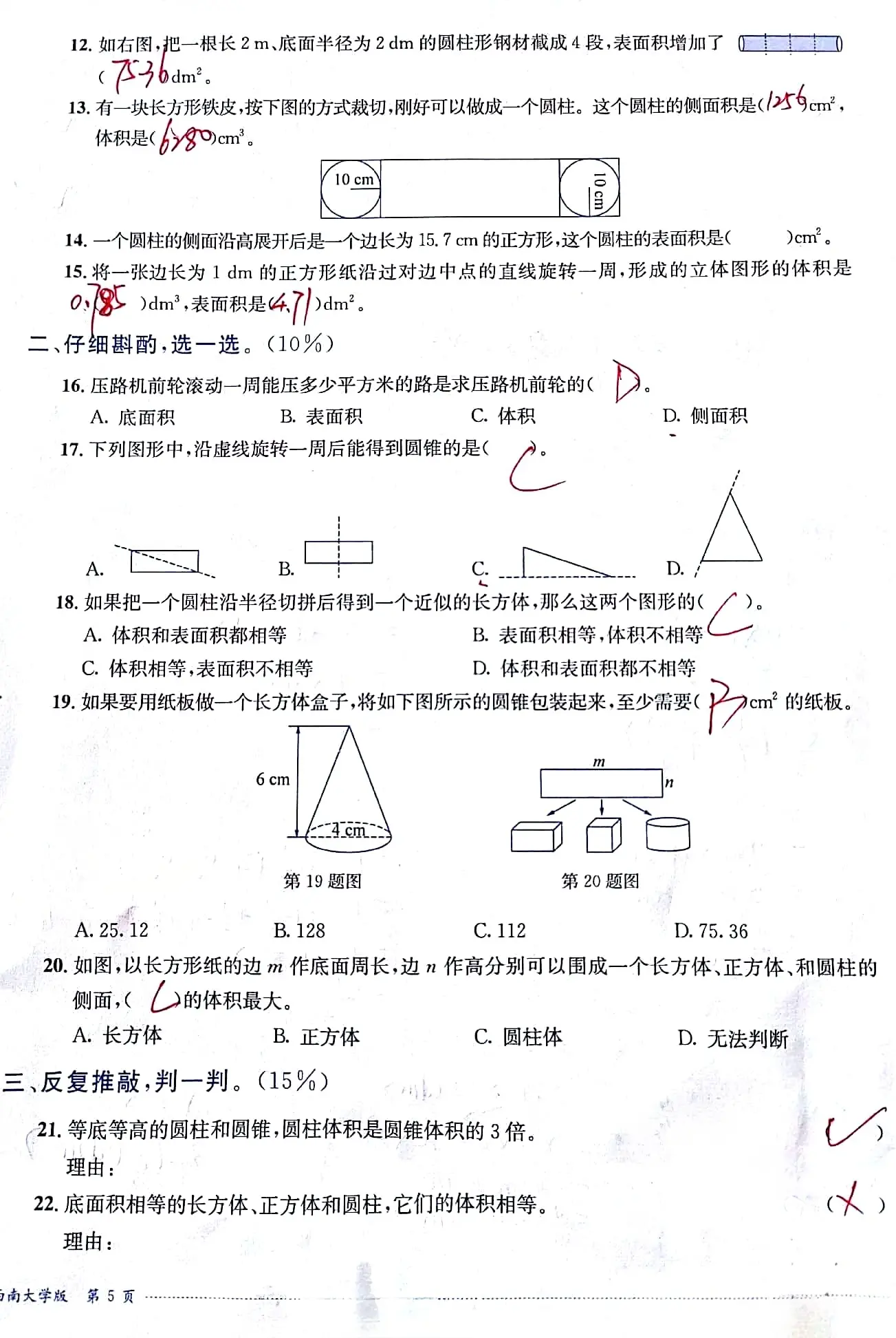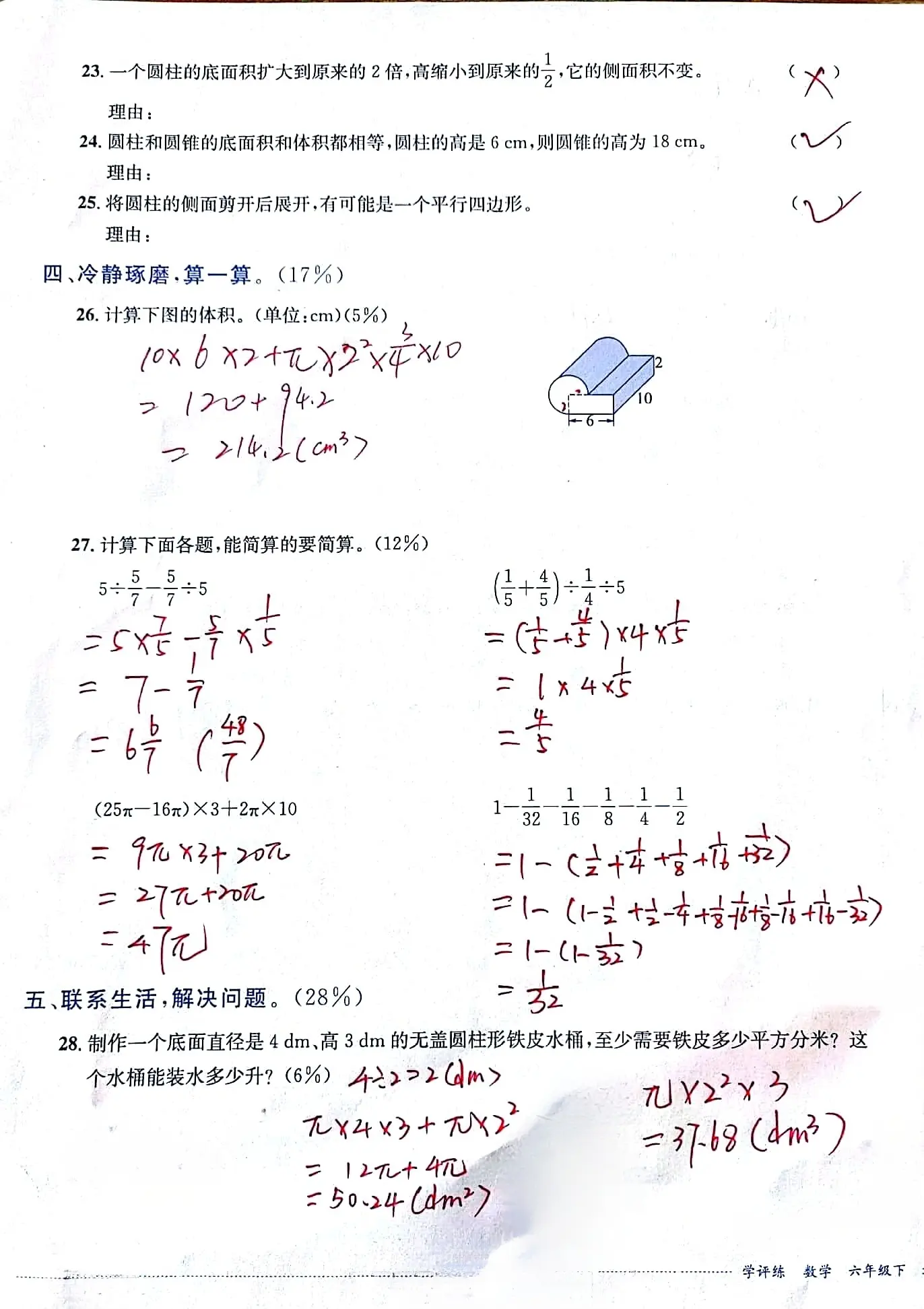 小升初数学圆柱圆锥