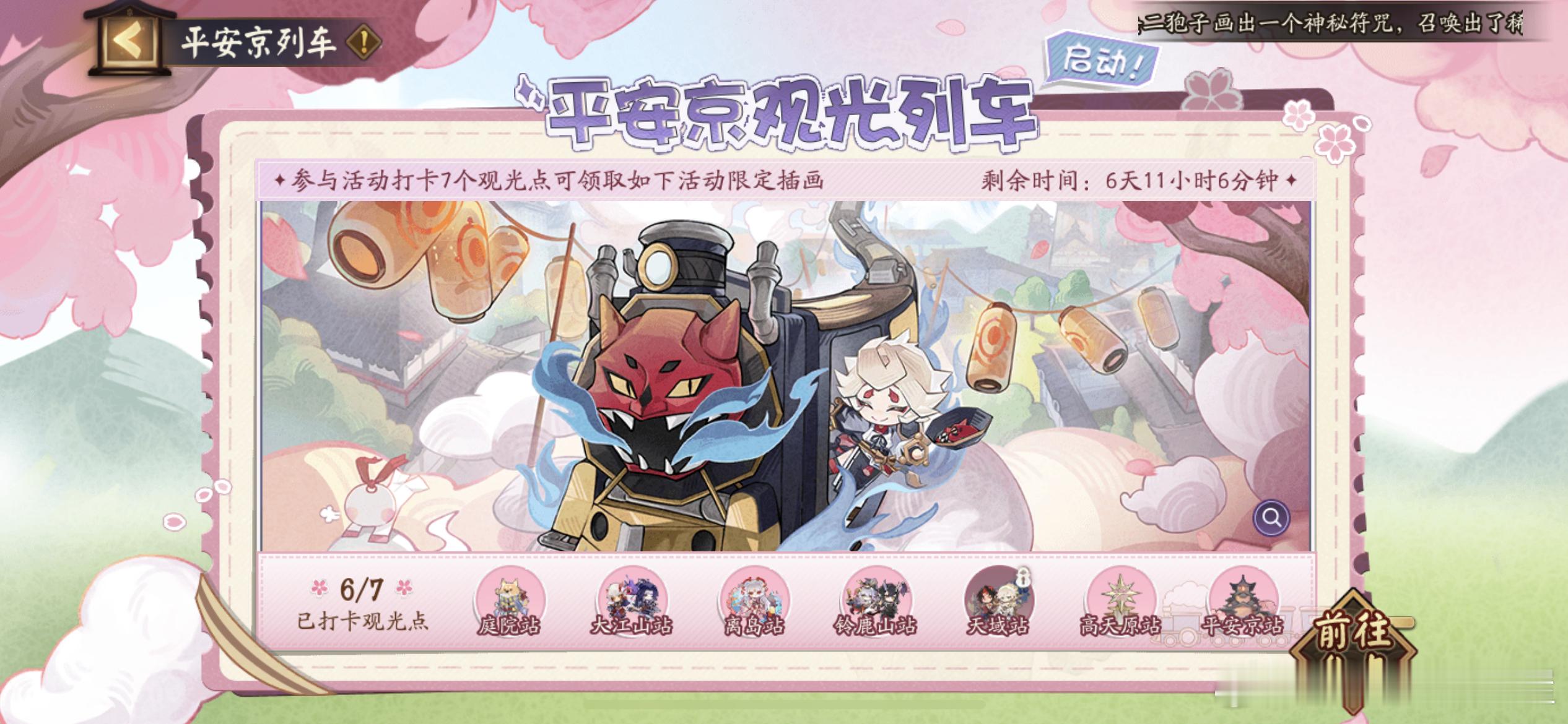 平安京观光列车启动!网页活动入口在游戏里,活动小纸人的第二个圈圈。