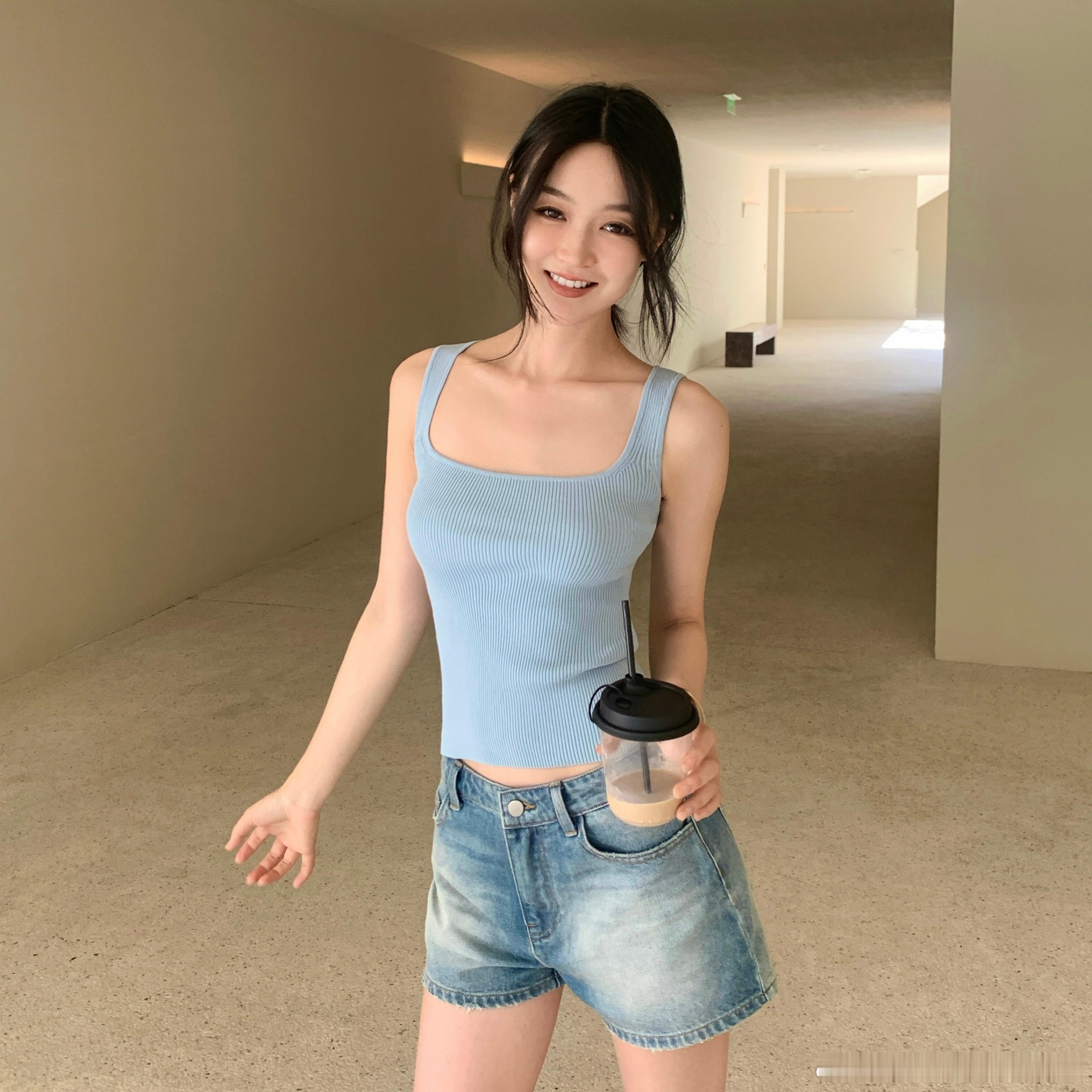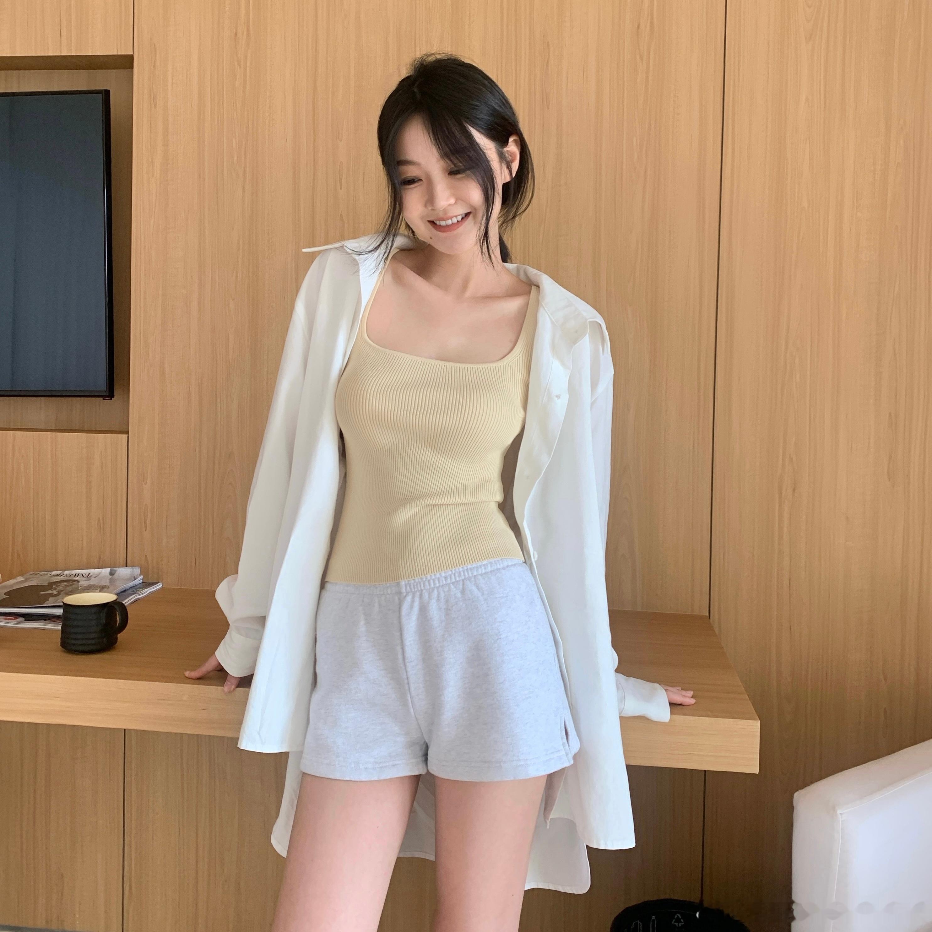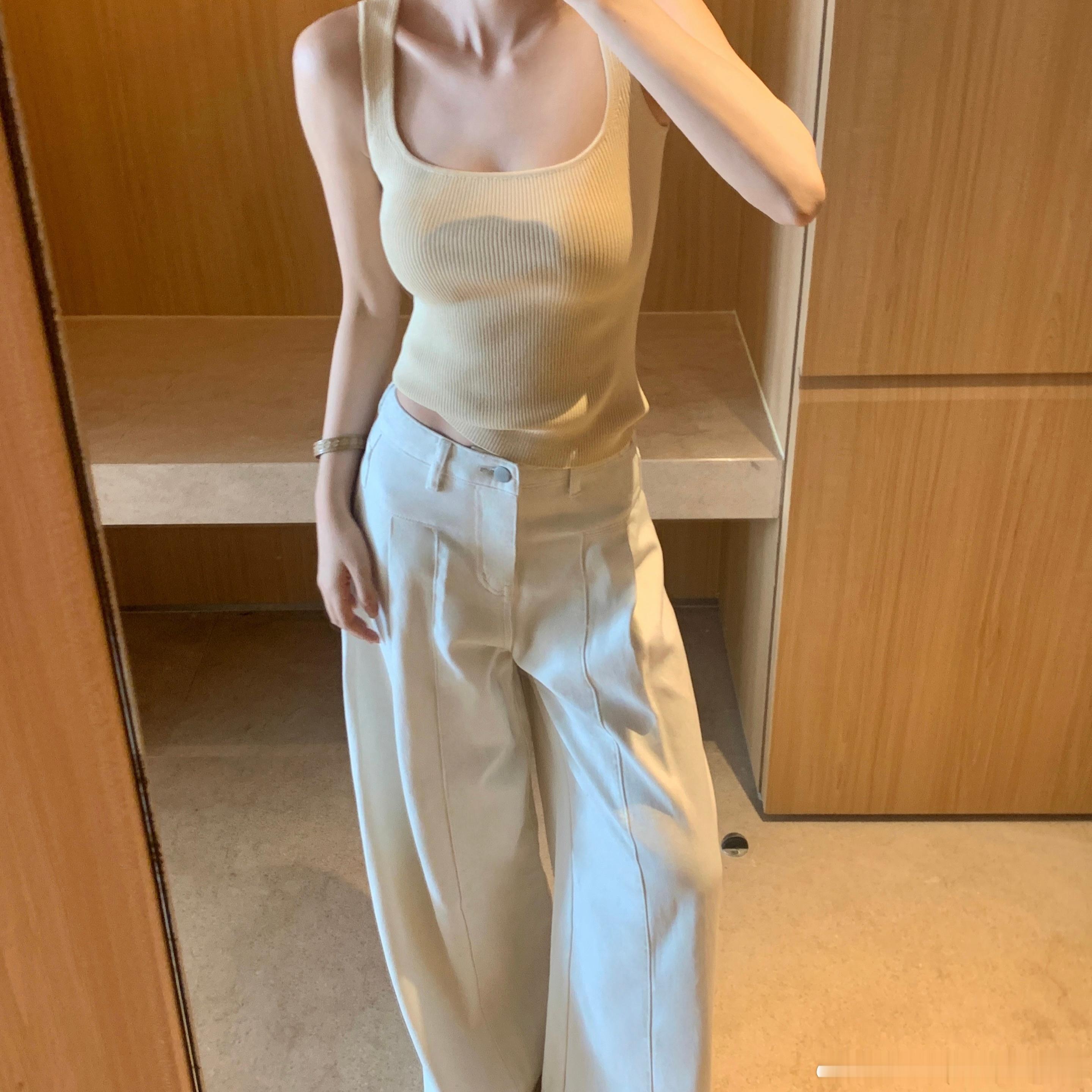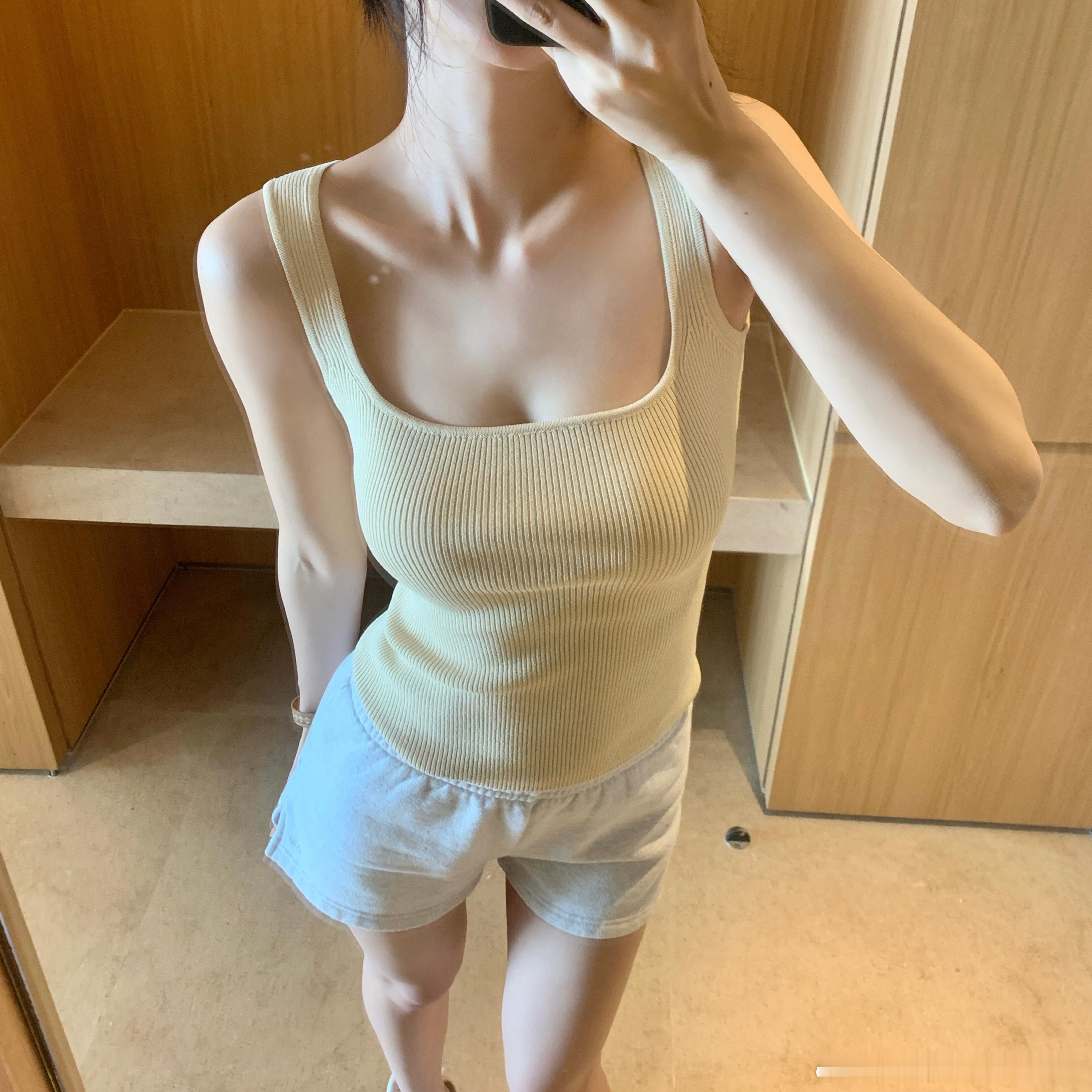 1:1的竖坑条 弹性很好 紧身但没有束缚感 可以穿出一点儿小堆叠感 非常藏肉显瘦