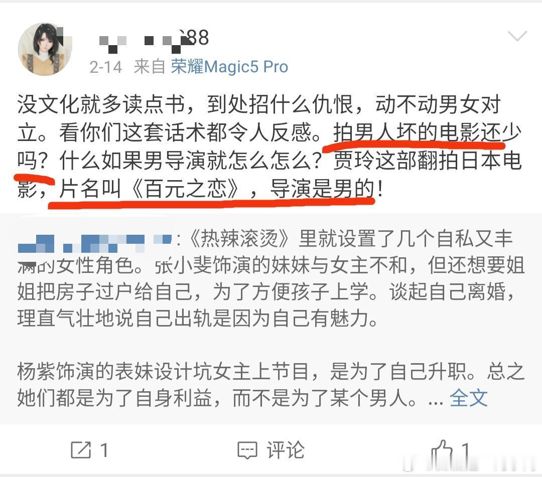 一位女铁粉在男大v的评论区说:“不觉得网上有人攻击自己这样的正常女性,自己又不是打拳的小仙女”。