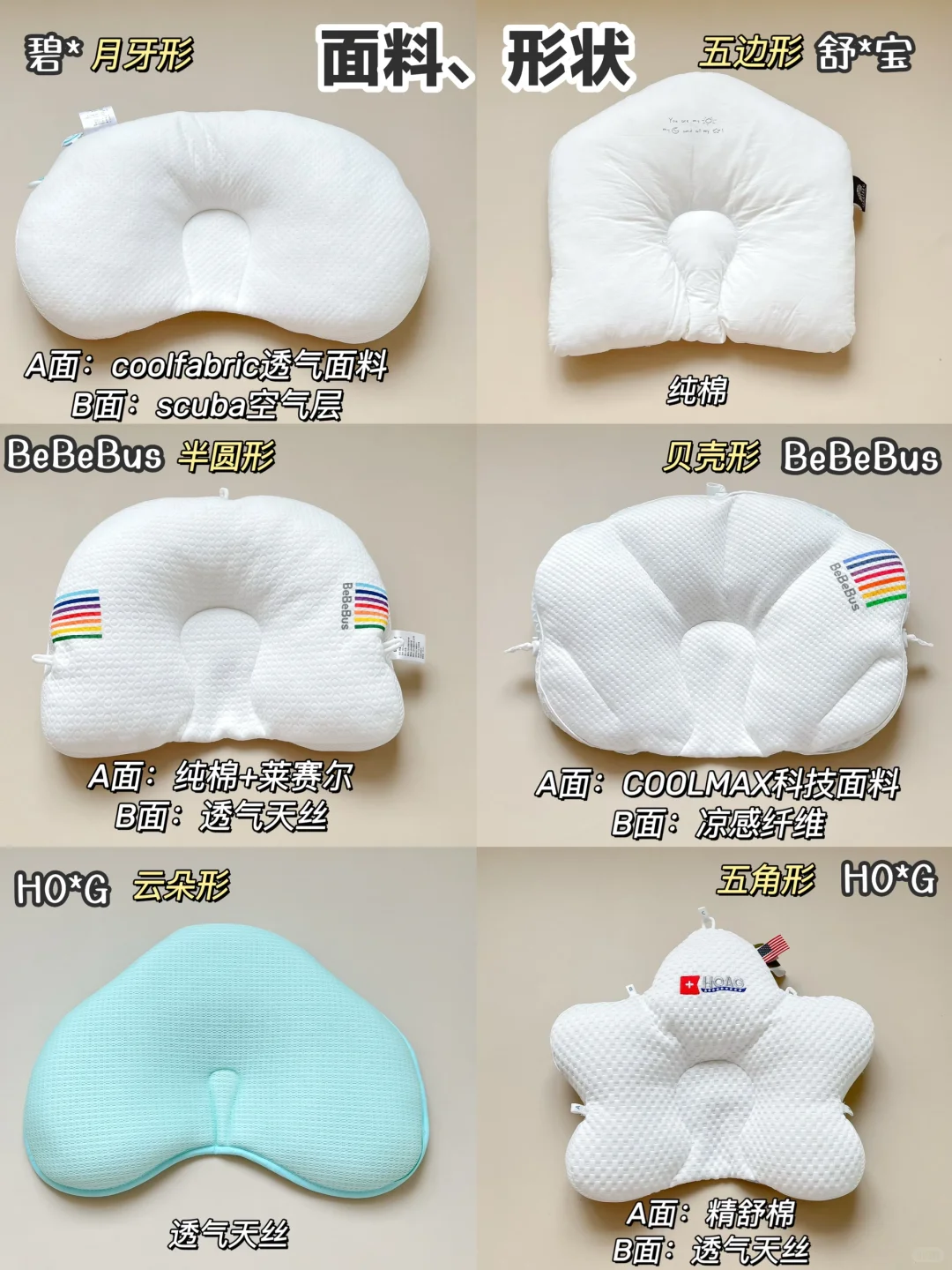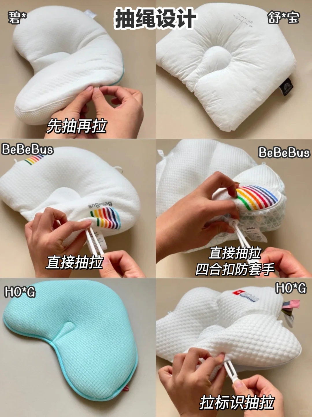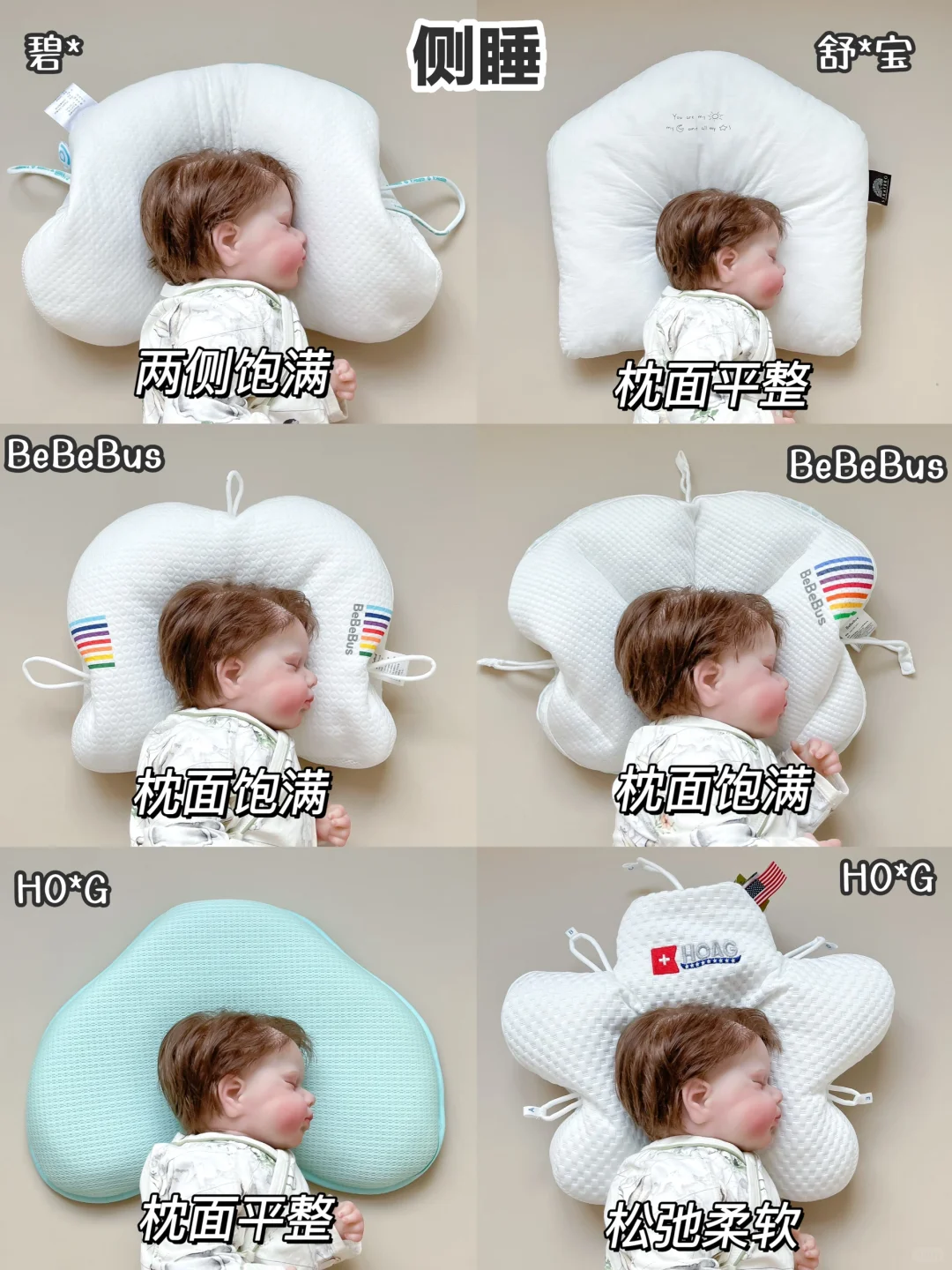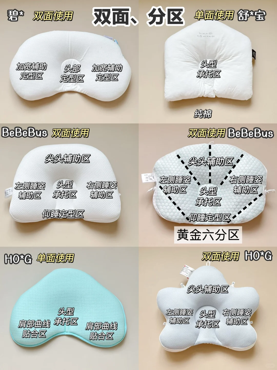 我儿子小时候用的是BeBeBus定型枕,两款都是可以分区调节的,抽拉后枕面紧实有支撑,而且都是抗菌防螨的材质,很透气,侧睡也不会压住宝宝小脸蛋,不容易跑枕
