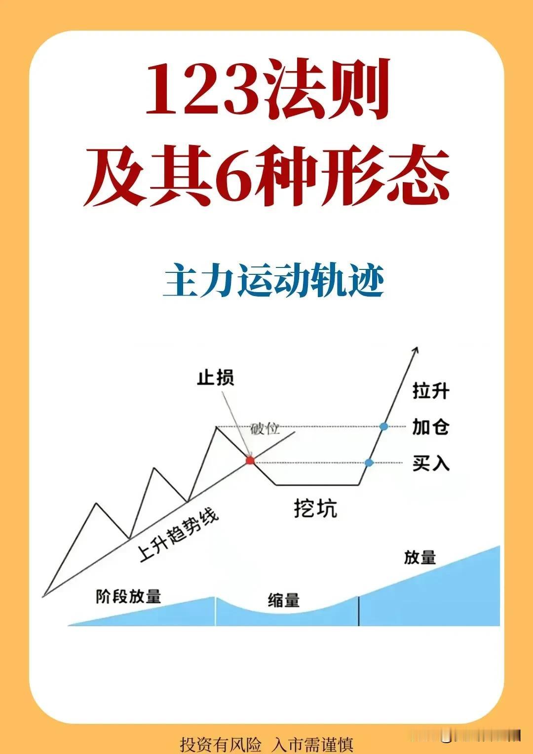 炒股不跟着主力走,那是吃不着肉的。尤其是在震荡的行情里,有的股票业绩很好,行业前景也不错就是股价不涨;更有甚者股价还跌。看着这样的票就难受,这样的票目前没有主力,散户推动不起股价来。 炒股要想快速吃到肉,就要找到哪些票有主力,并懂得进场出场位置,才能较准确吃肉。下面的123法则,清晰介绍了主力运动轨迹,根据主力运动轨迹何时入场何时出场,大家可去研究研究。 觉得有帮助的也可以跟其他朋友一起分享