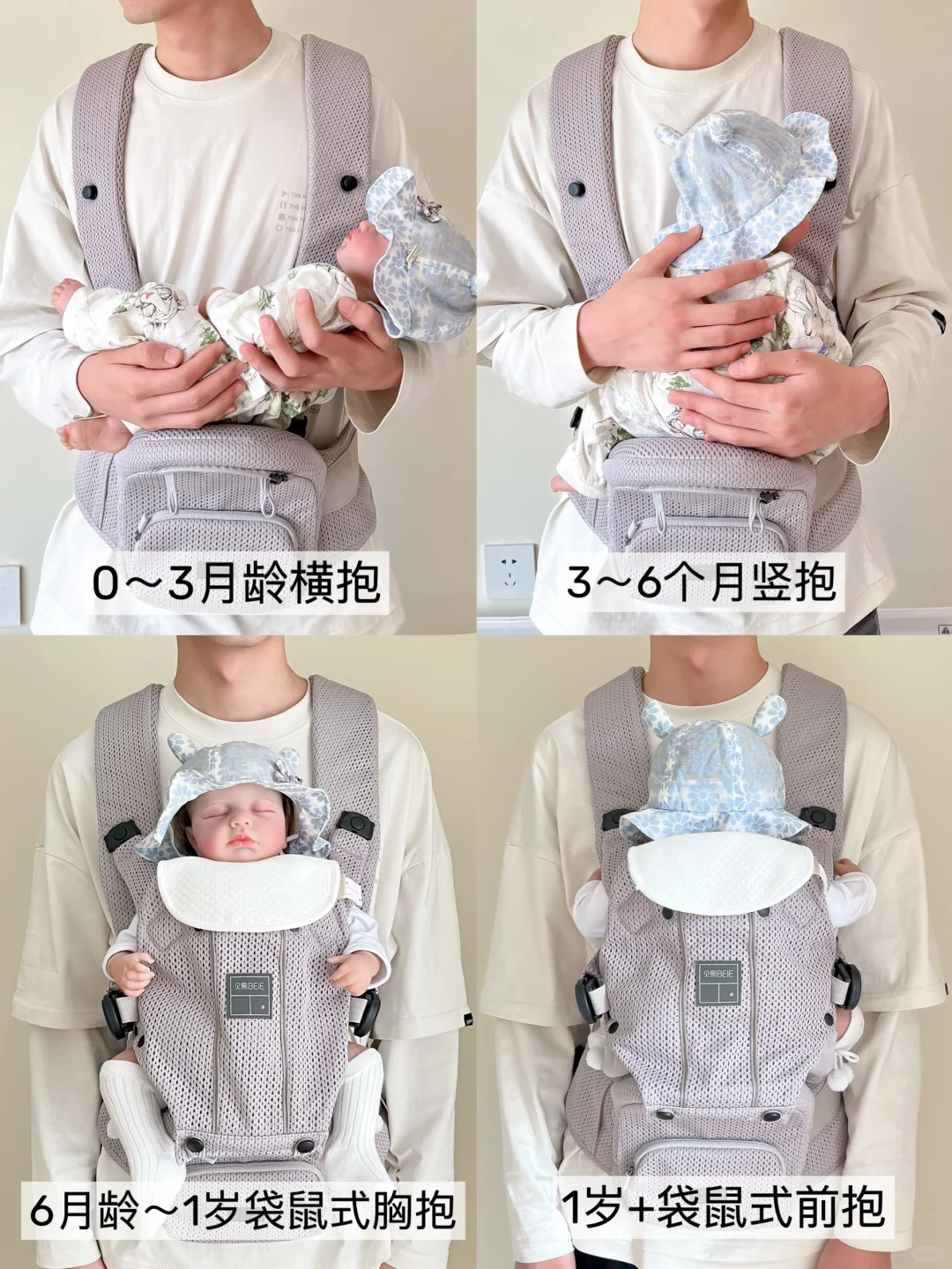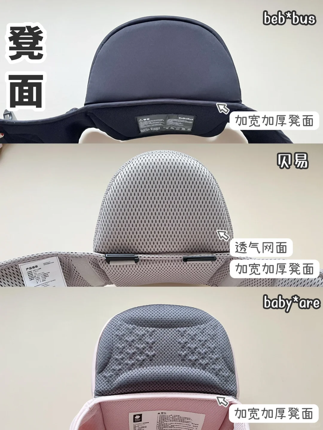 三款都是腰凳+背带+口水巾,可拆卸分阶使用,宝宝坐时双腿自然呈M型