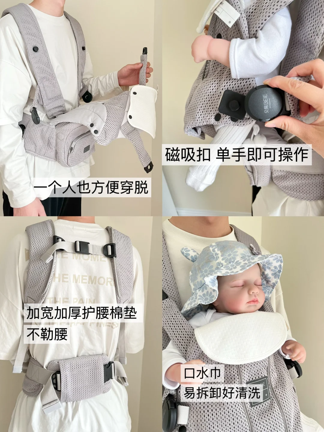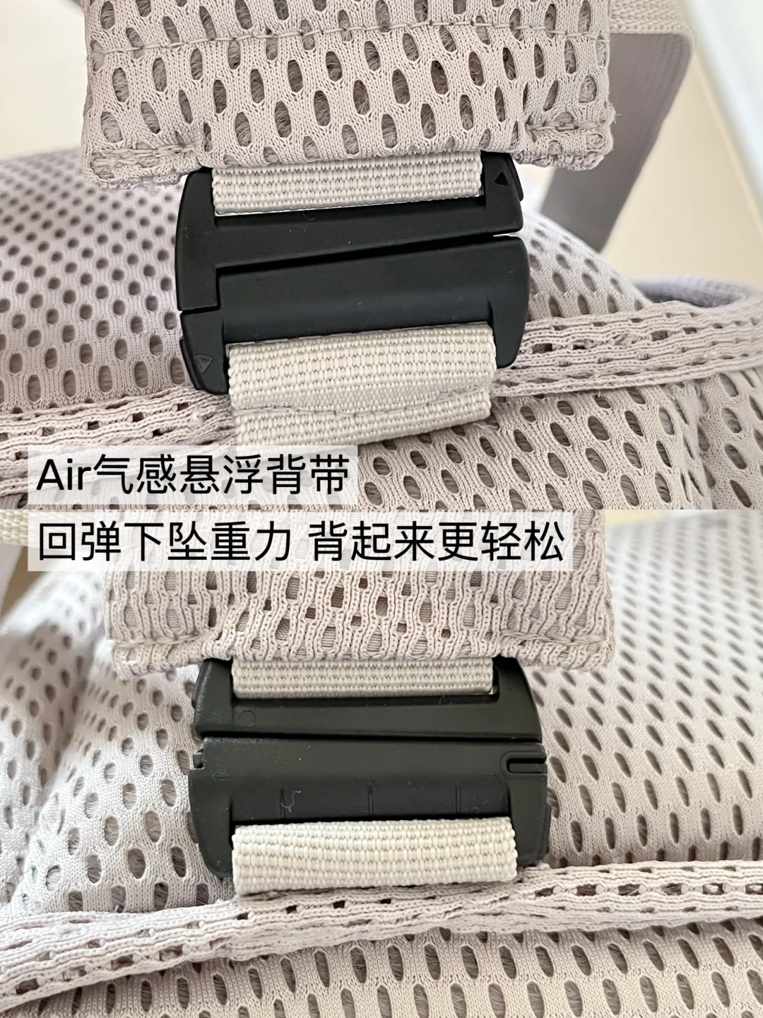 贝y:fitgo旋钮调节束腰控制+抽拉式收束控制双向调节,不下坠,加宽加厚护腰棉垫不累腰,六点式减压悬浮减重背带,回弹重力背宝宝很省力