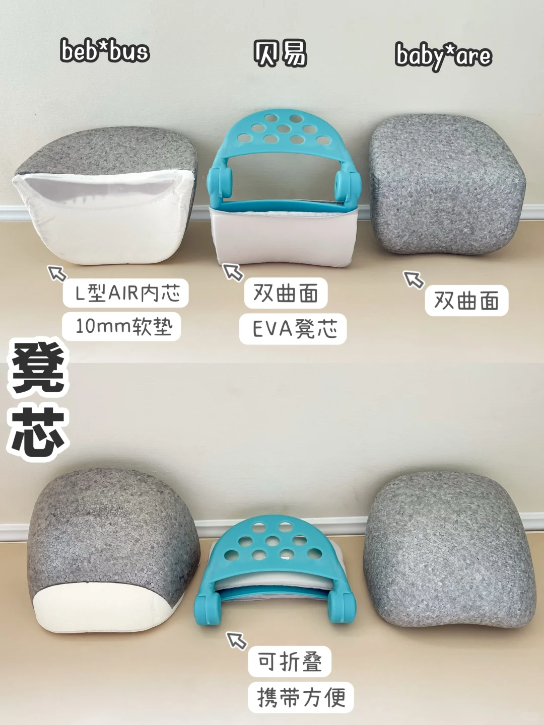 贝y:可折叠双曲面EVA凳芯,腹部2.5cm加厚高弹海绵,对剖腹产麻麻友好,方便携带
