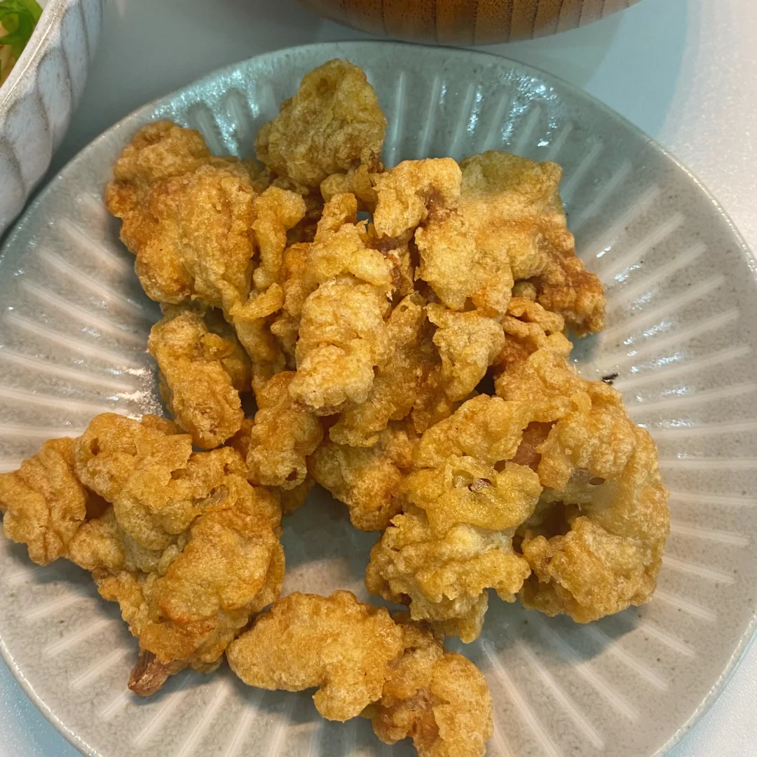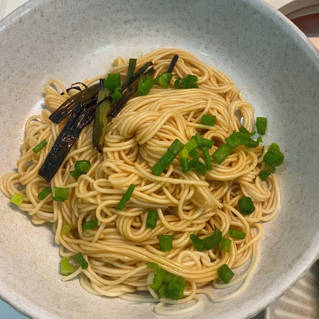 今晚给女儿做了葱油拌面(不太入味,偏甜口),还有一小盘小酥肉和裙带菜虾滑汤,汤里加了几颗枸杞。