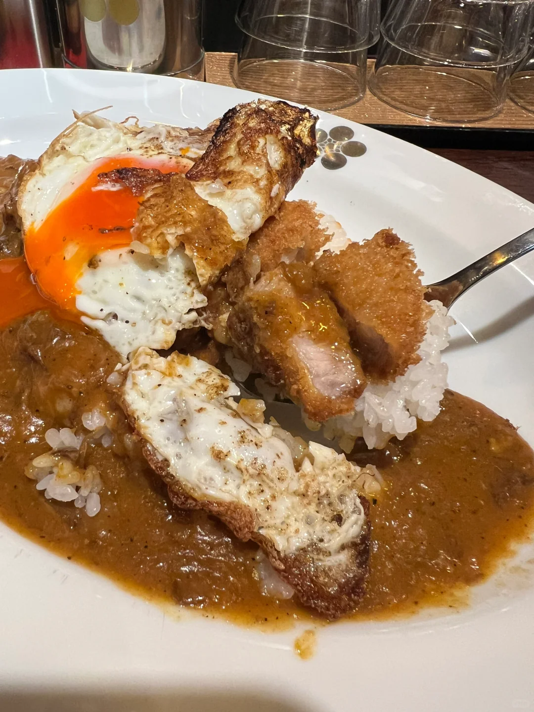 大阪坠坠好吃的咖喱饭🍛(自封的) 猪排➕荷包蛋 牛肉饼➕茄子🍆好吃!