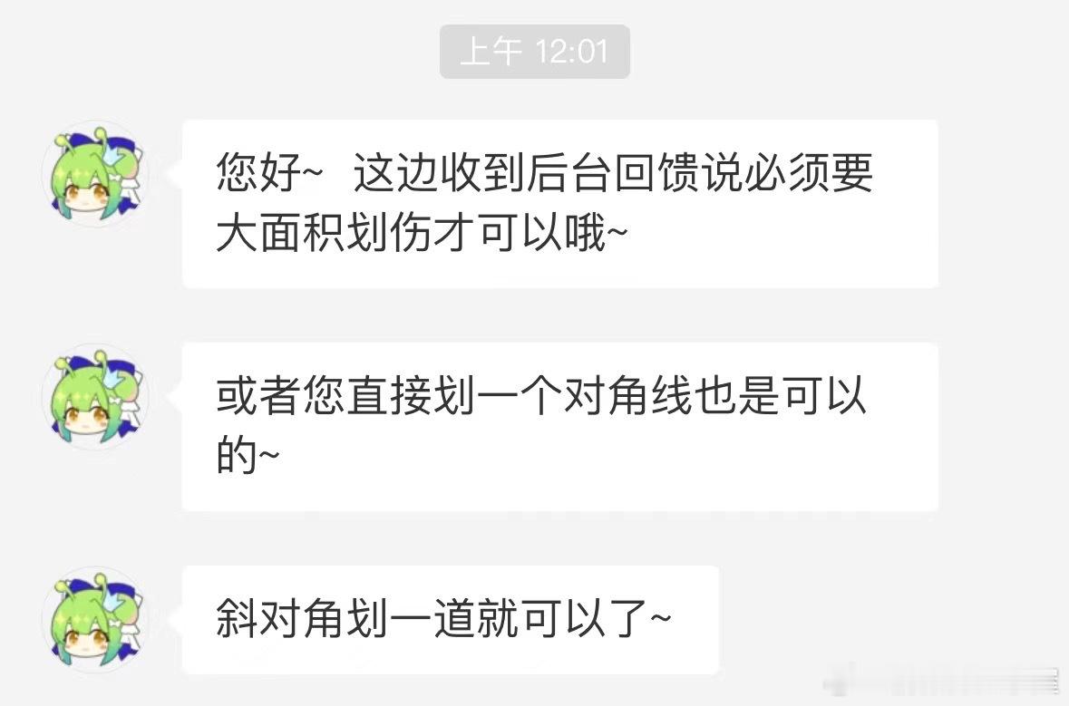昨晚我沿着边缘划了一道长的,徽章最上面的纸已经被我划破了,但是客服说面积不够大,要沿对角线划。
