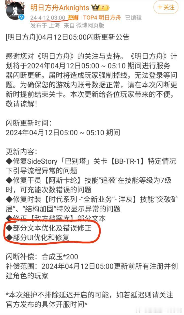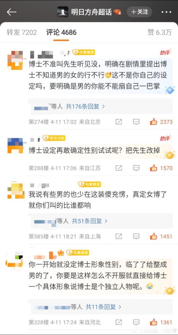 在官博下面,有数千条评论要求修正文案,把“先生”改回“博士”或其他不强调性别的称呼(图三)。这种要求完全合理,游戏策划也没死犟,于当晚凌晨3点发布临时更新公告(图四),更正了相关文案。打开游戏后可以看到,原本是“先生”的地方已经改成了“您好”(图五)