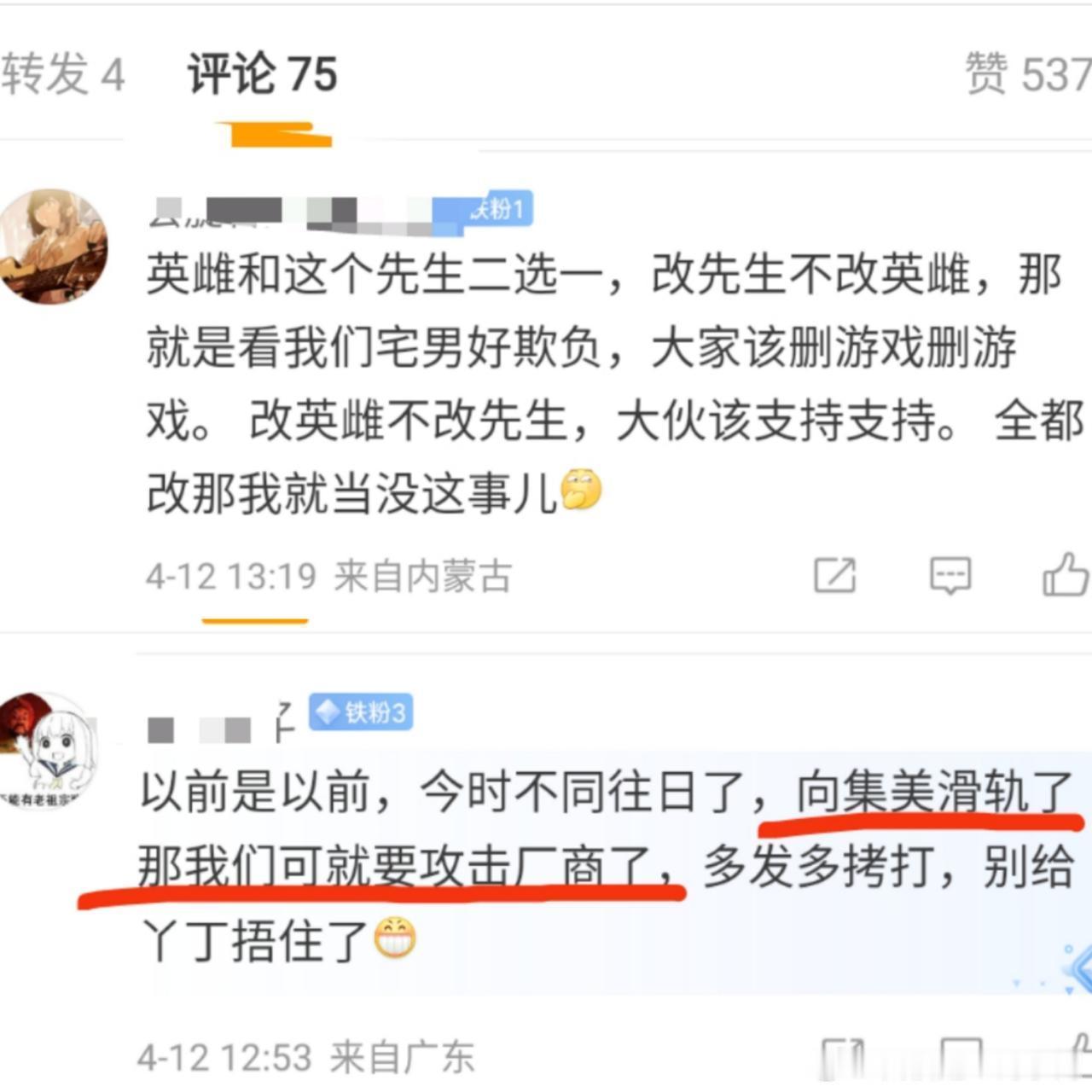 这事本来到此就结束了,但某些男玩家却突然急了。他们在“临时更新公告”下面嘲讽女玩家,无视女玩家在游戏的二创同人,周边宣发等方面的重要性。(图六)同时,他们还声称要“弃游退款”,要抱团攻击游戏厂商(图七)