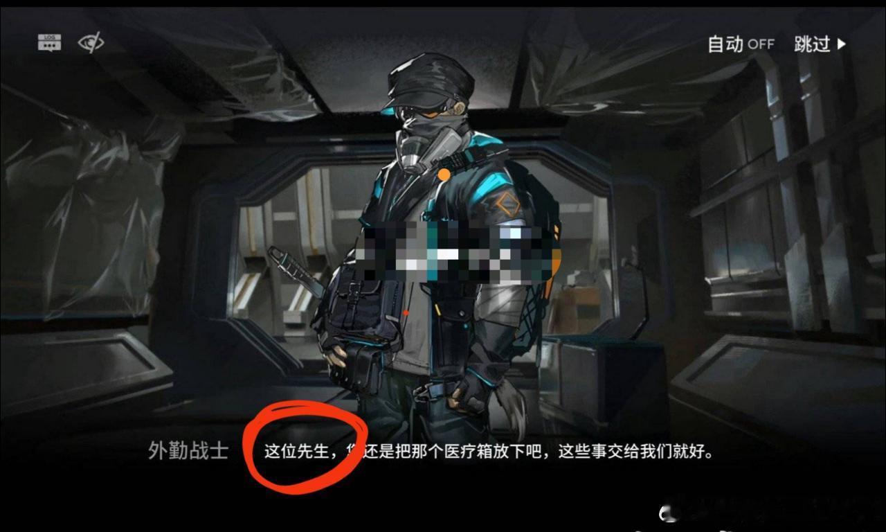 这看似无关痛痒,但实则不然。关键在于:从开服以来,方舟长期保持了“主角性别模糊化”的特色。具体地,玩家操控的主角保持着“兜帽套头,不辨男女”的形象;同时,NPC也向来称呼主角为“博士”,而不是“先生”或“女士”。(图二) 这种游戏特色给了女玩家更好的代入感,自然吸引了更多的女玩家比例。也正因此,这次文案里的“先生”无疑是一记背刺,在女玩家群体里引起了震动。