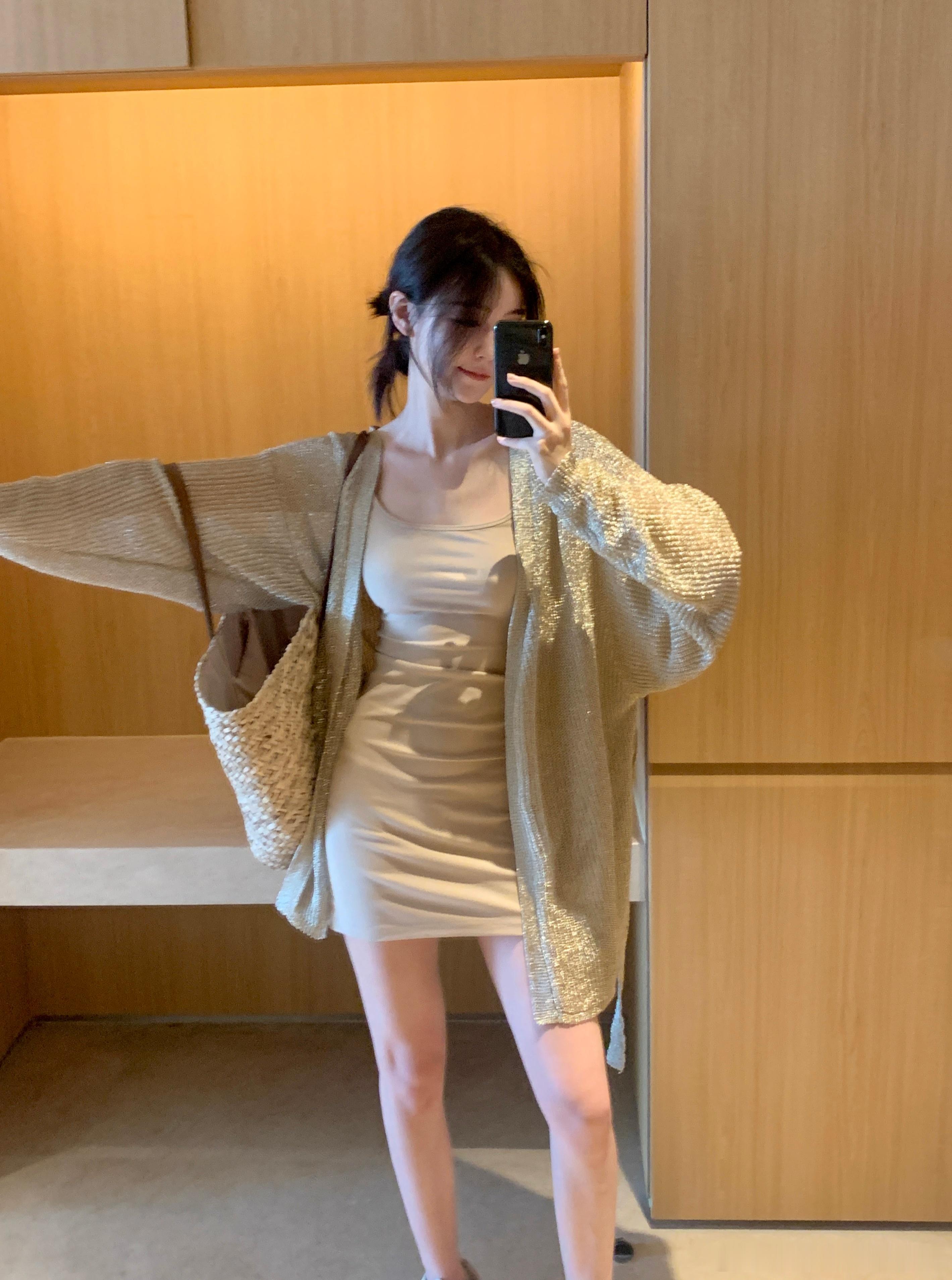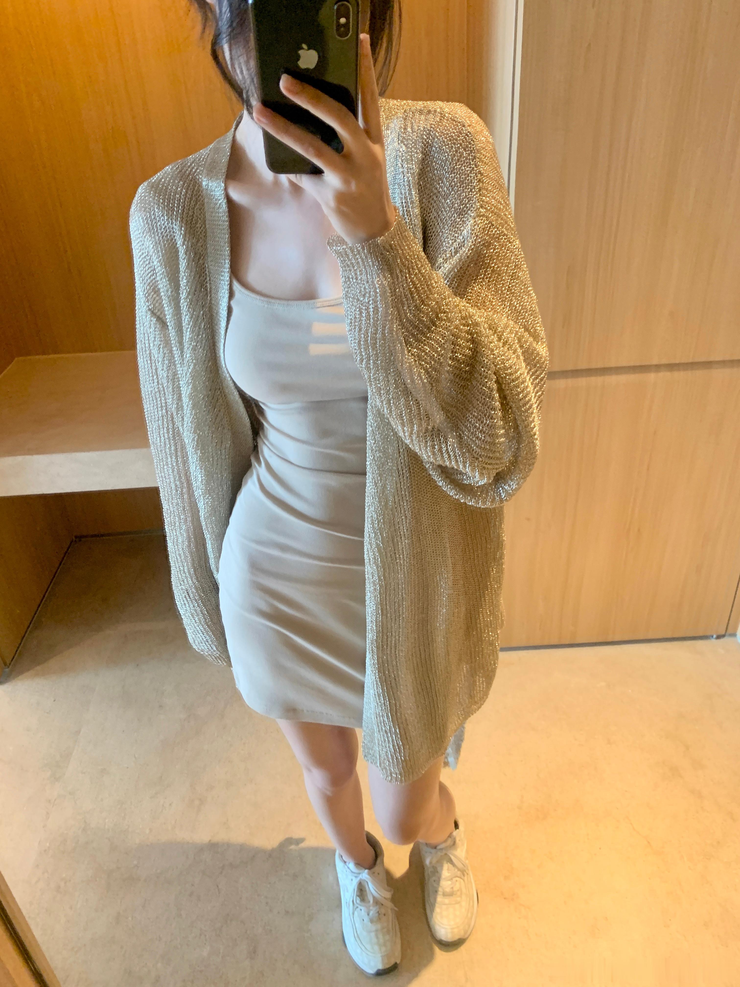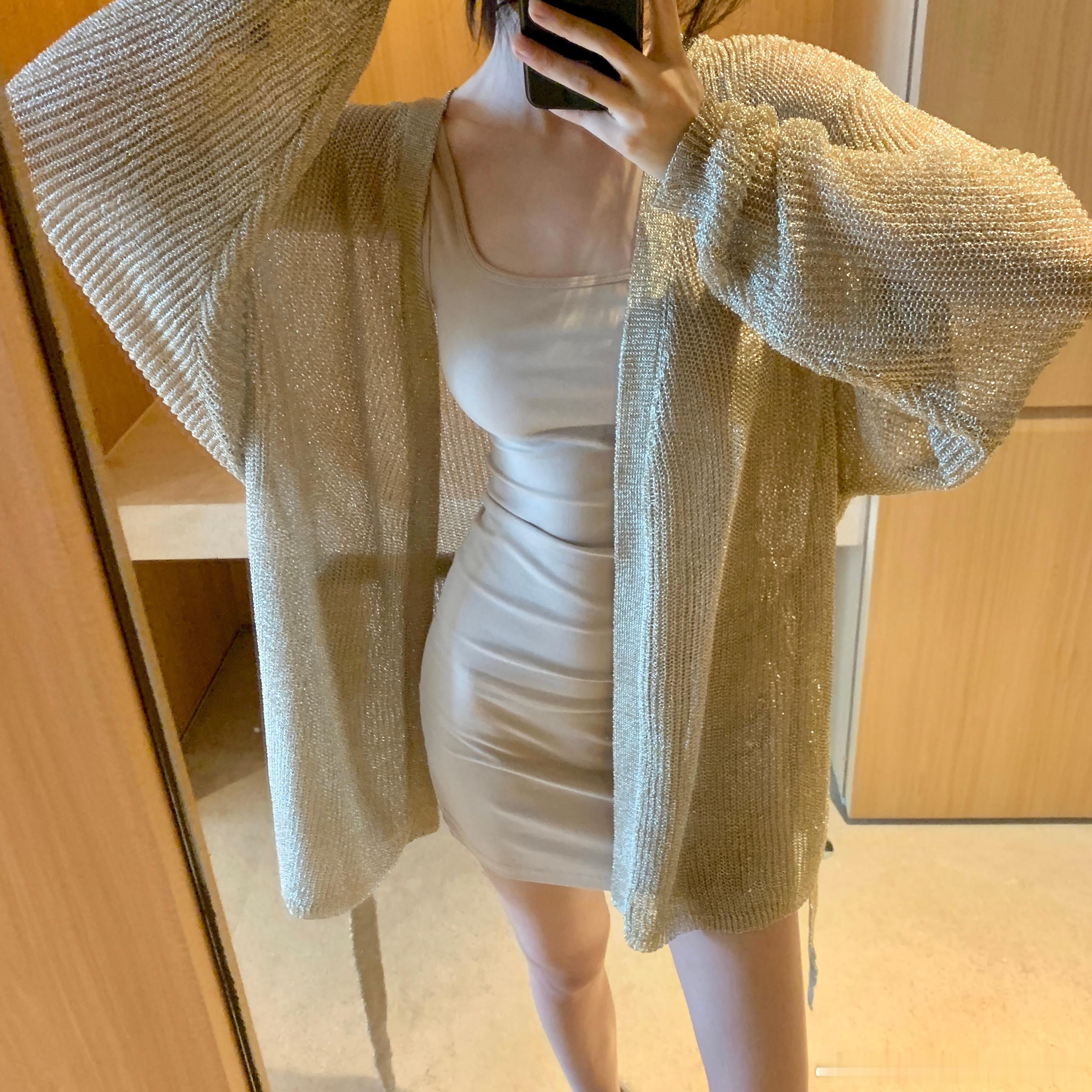 偏香槟的金色系 松松透透 又有点儿微闪的小开衫外套