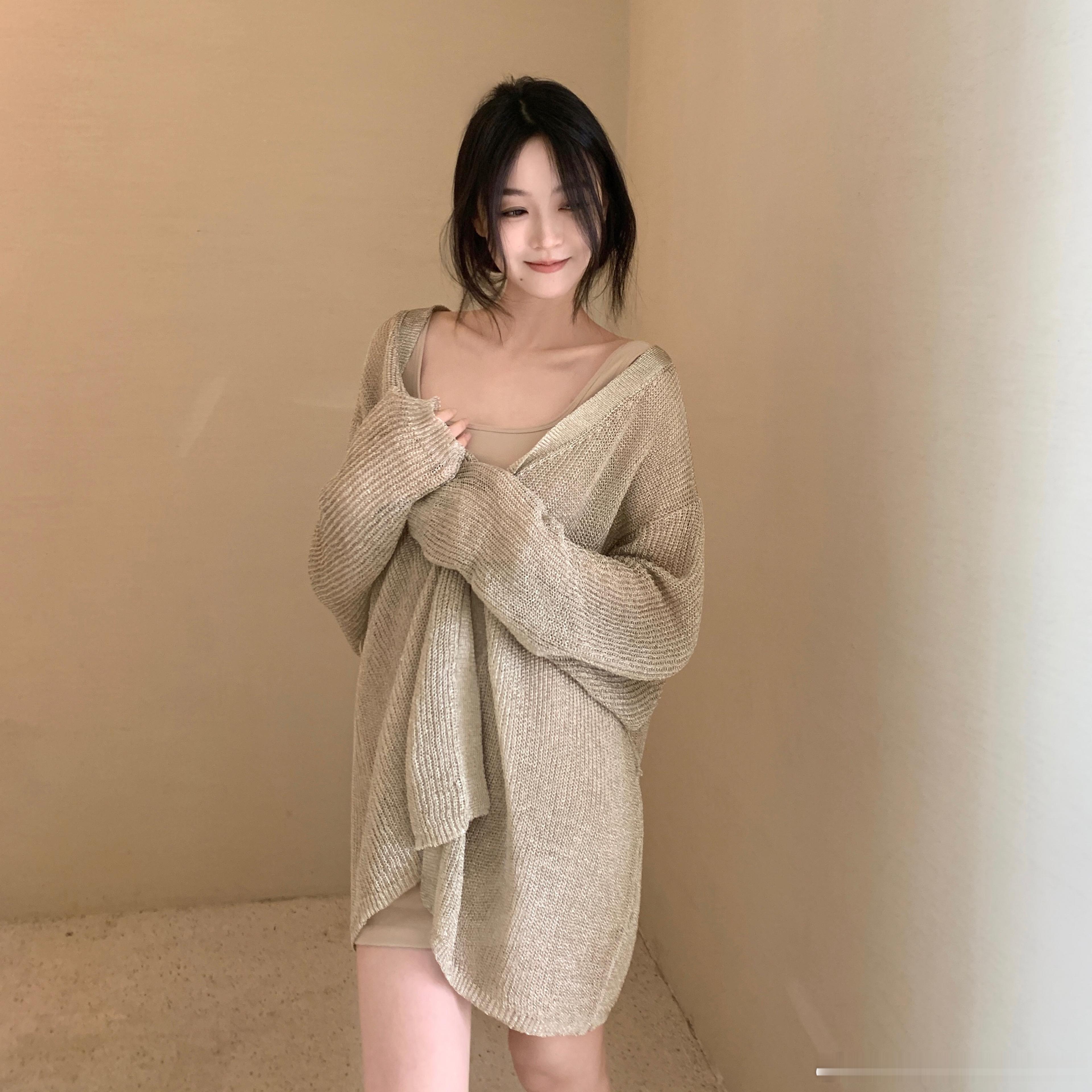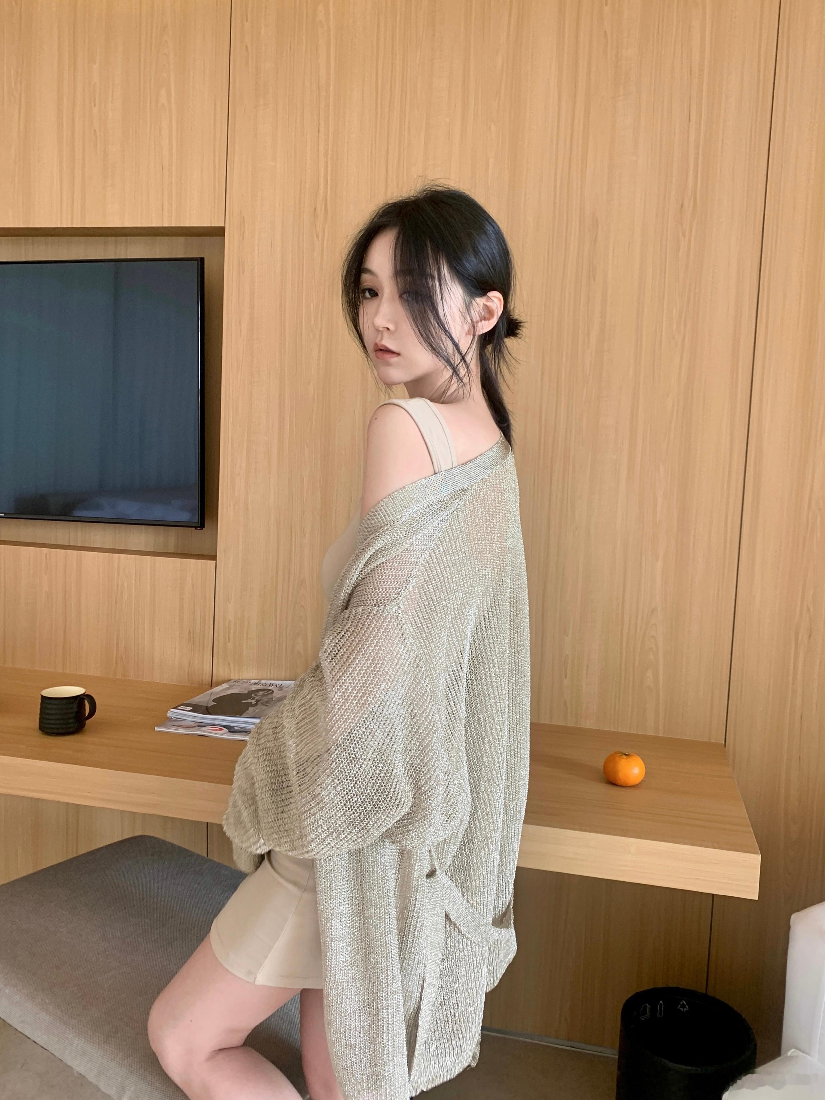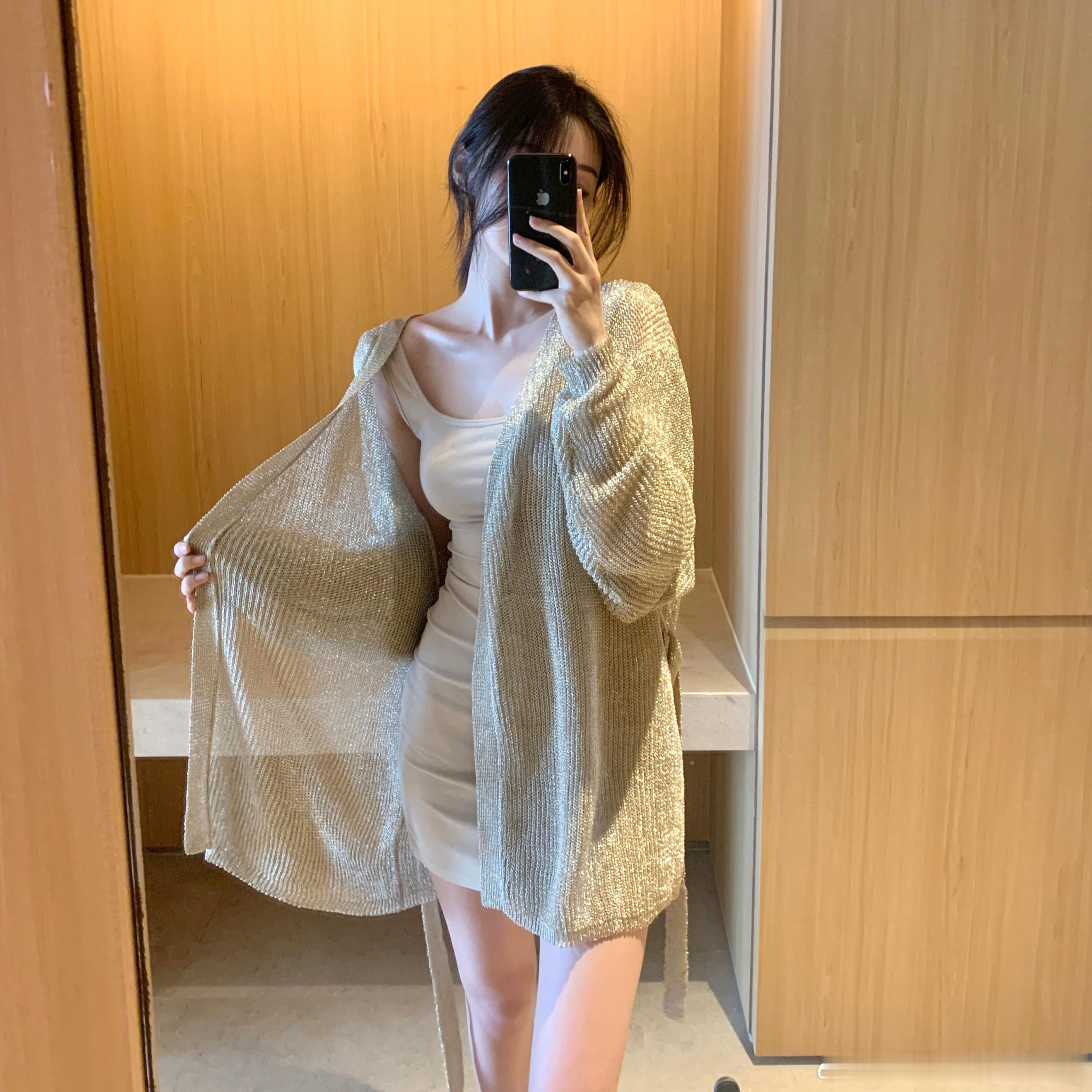 偏香槟的金色系 松松透透 又有点儿微闪的小开衫外套