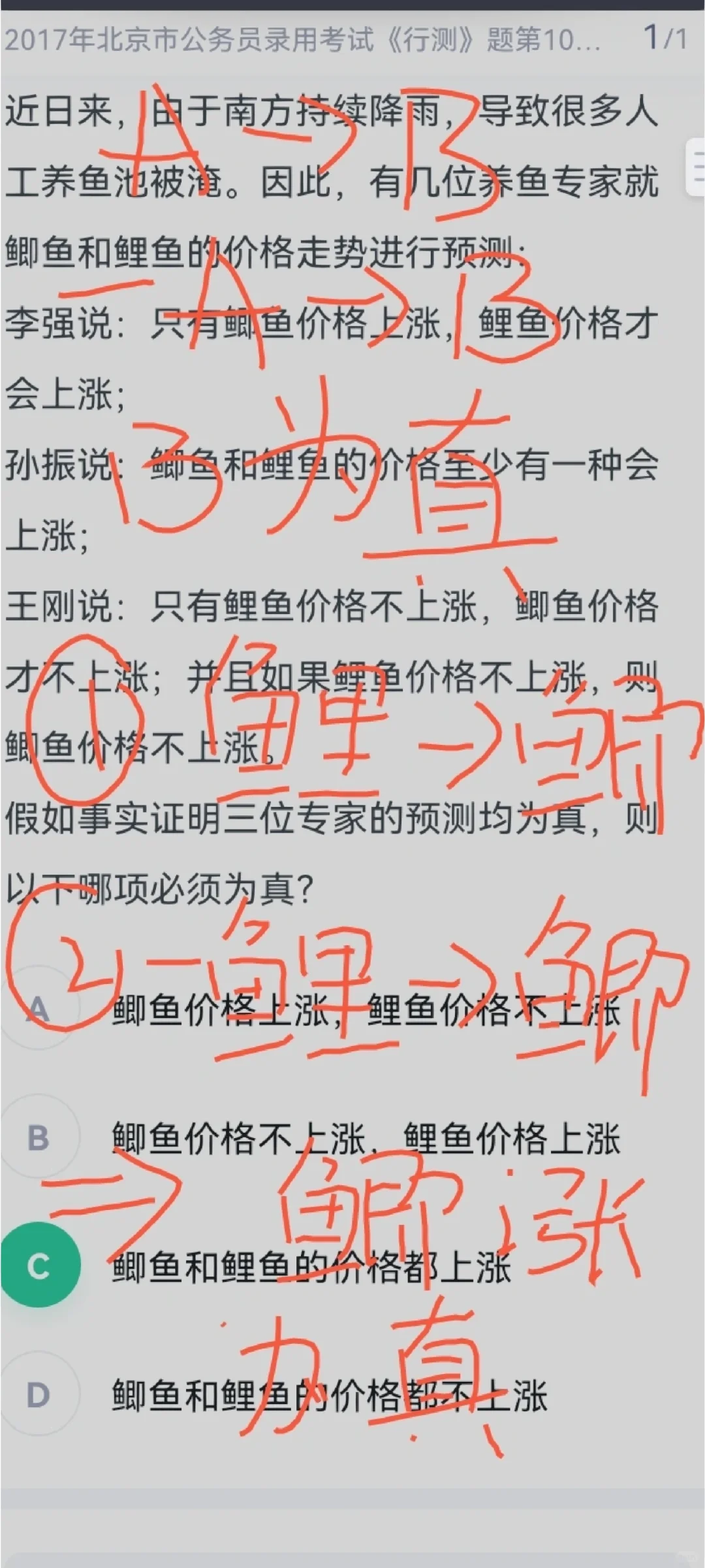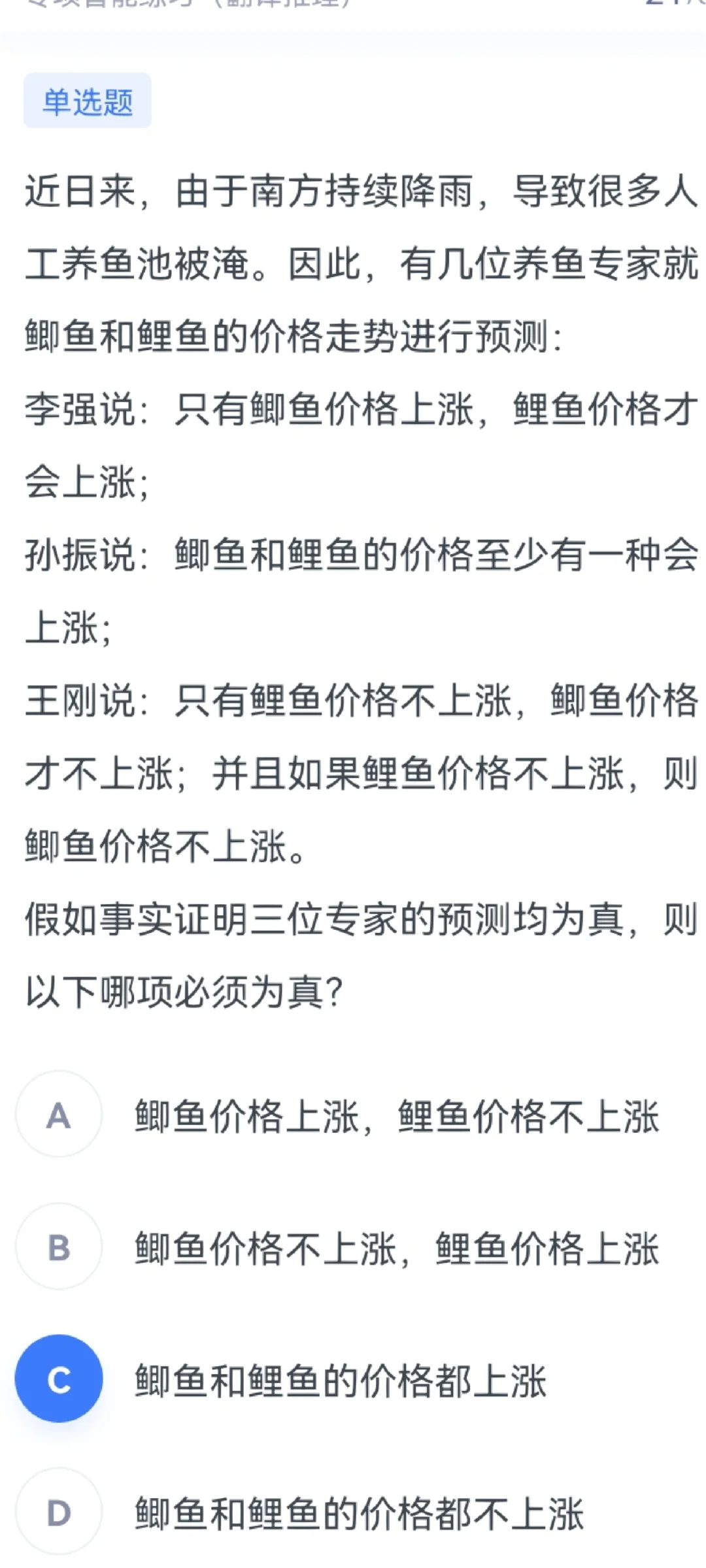 A推B 非A推B = B为真 A推B A推非B = A为假 鲤涨推鲫涨 非鲤涨推鲫涨 =鲫涨为真 非鲤涨推鲫涨 非鲤涨推非鲫涨 =非鲤涨为假=鲤涨为真 最后综合 鲤和鲫都涨 即使一天只学会一个知识点 都比你盲目刷题强👍