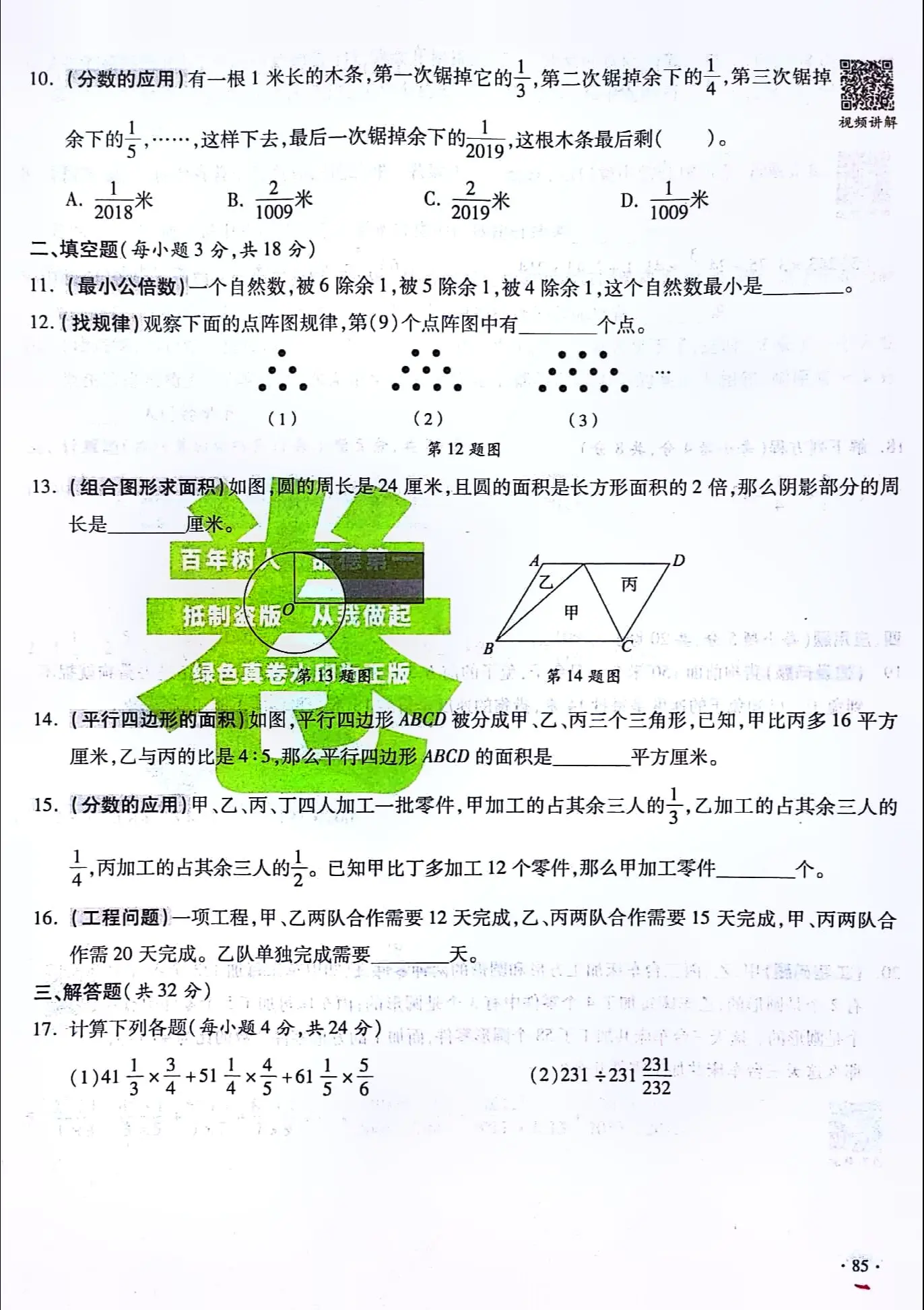 六年级数学 期中测试