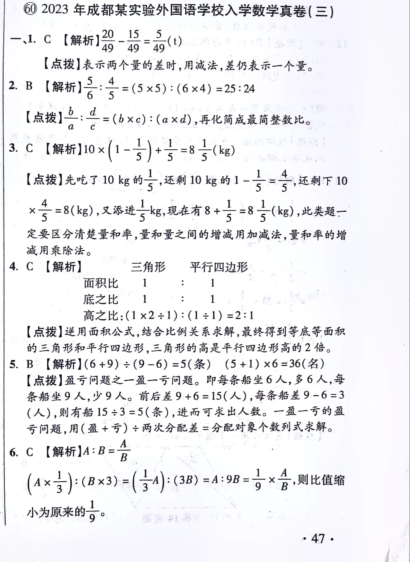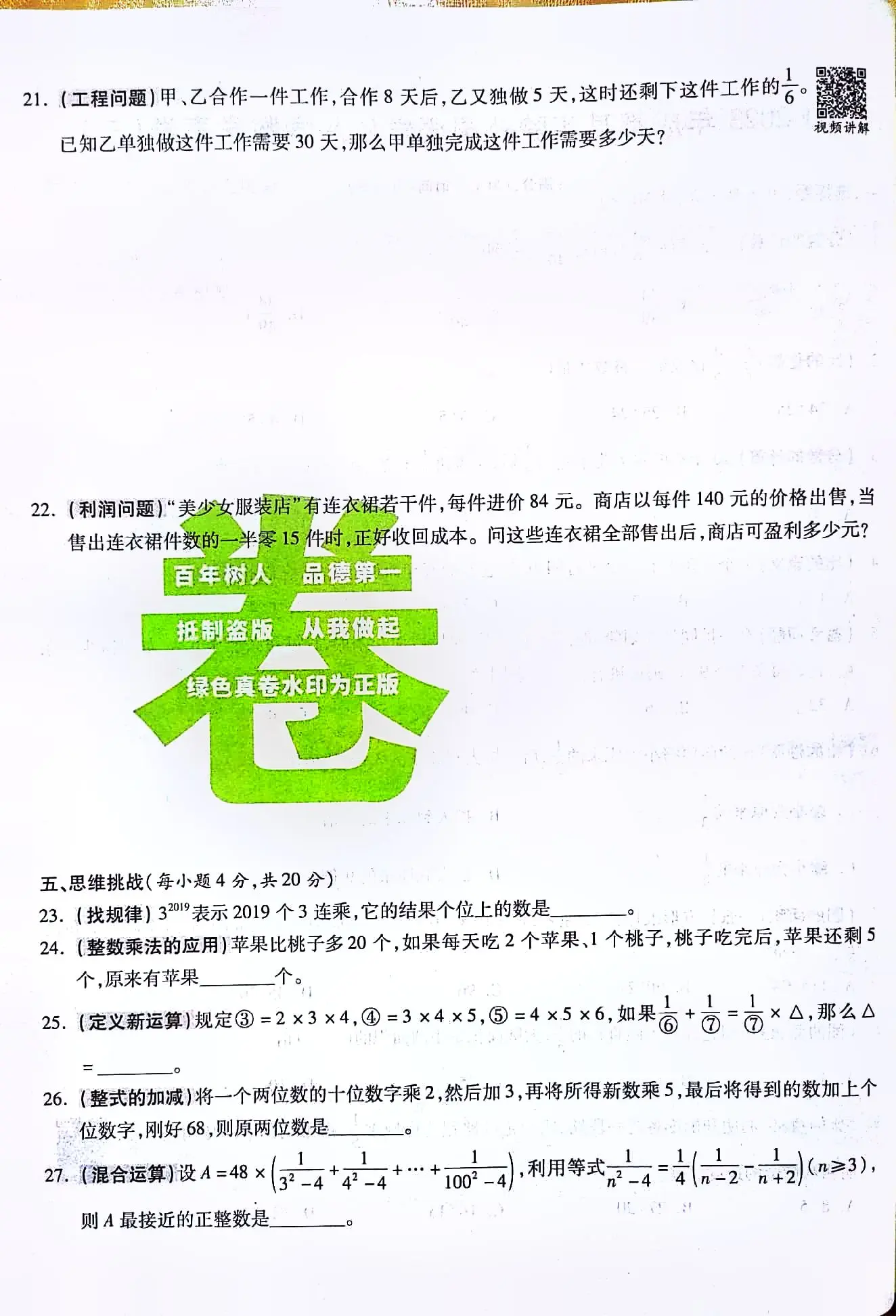 小升初真卷 分班考试