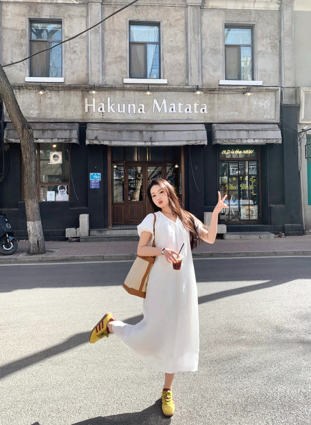 简约款小白裙也太好看啦!! 好想穿这套去海边度假~[黄金薯R] 清爽干净又随性~🍃 连衣裙,肤感嘎嘎好!!夏季不闷热![举手R],宽松,好藏肉!!一整个慵懒住~[大笑R]穿上小裙儿去度假咯!! -