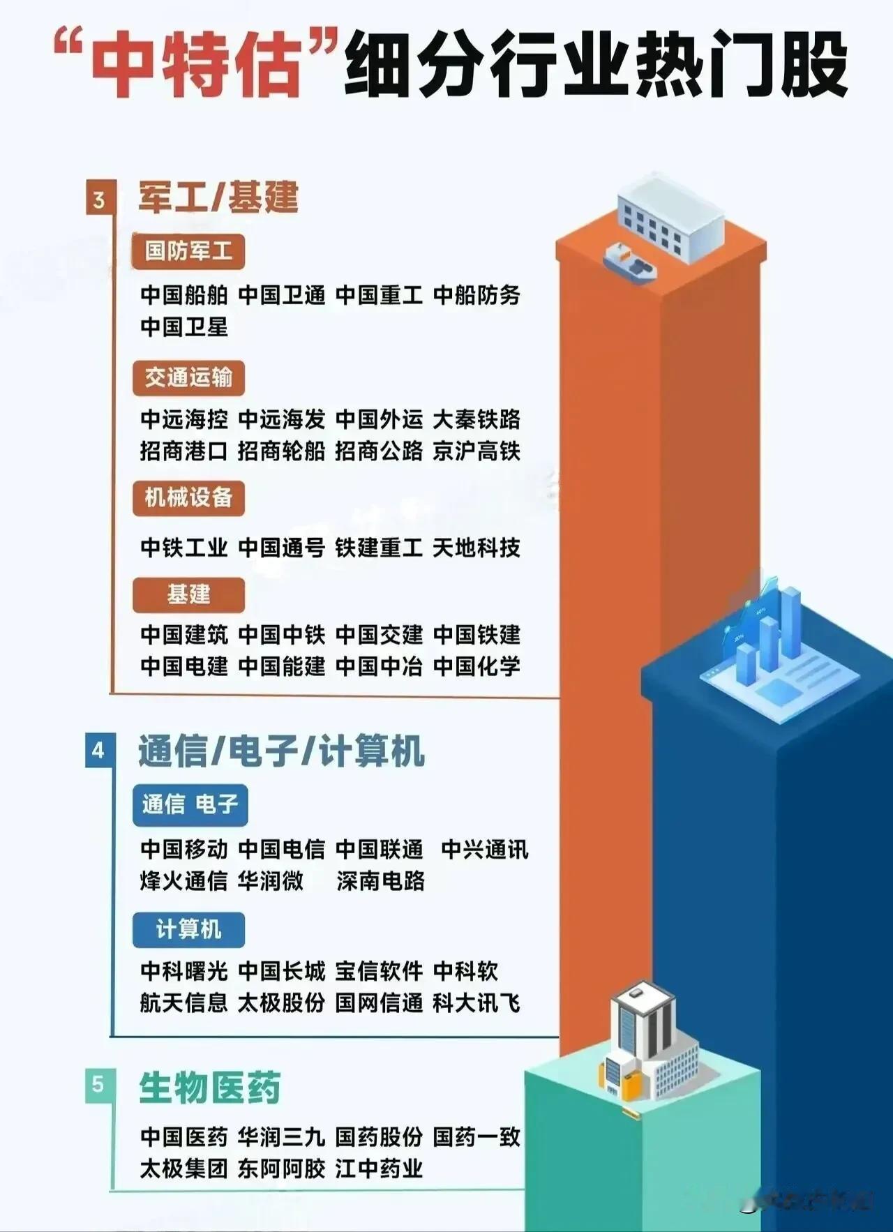 分红新规和退市新规出来后,价值低估、业绩好分红慷慨的中字头股票和中特估就价值凸显。成为各路资金争抢的香饽饽。中字头不少优质股票市盈率才几倍。中字头和中特估各细分行业优质股汇总