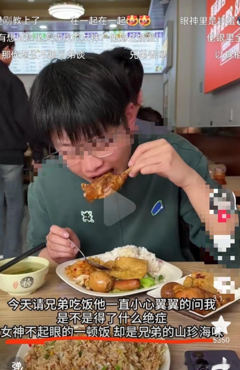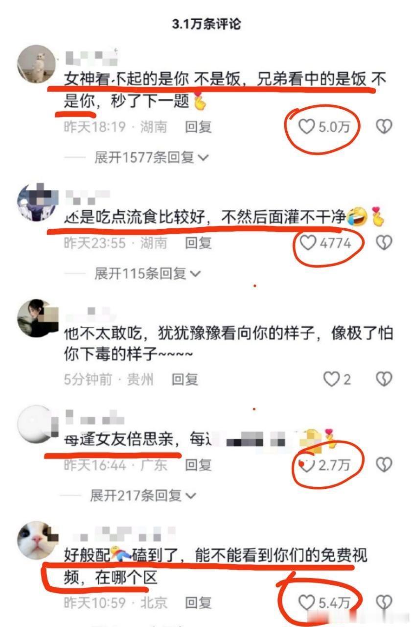 然而仅一年后,一个视频用了类似的话术 “女神眼里的一顿饭,兄弟眼里的山珍海味”(图三)。但这次,评论区不再是“兄弟们的主场”,而是被女网友们大几万赞的犀利评论所淹没(图四)。