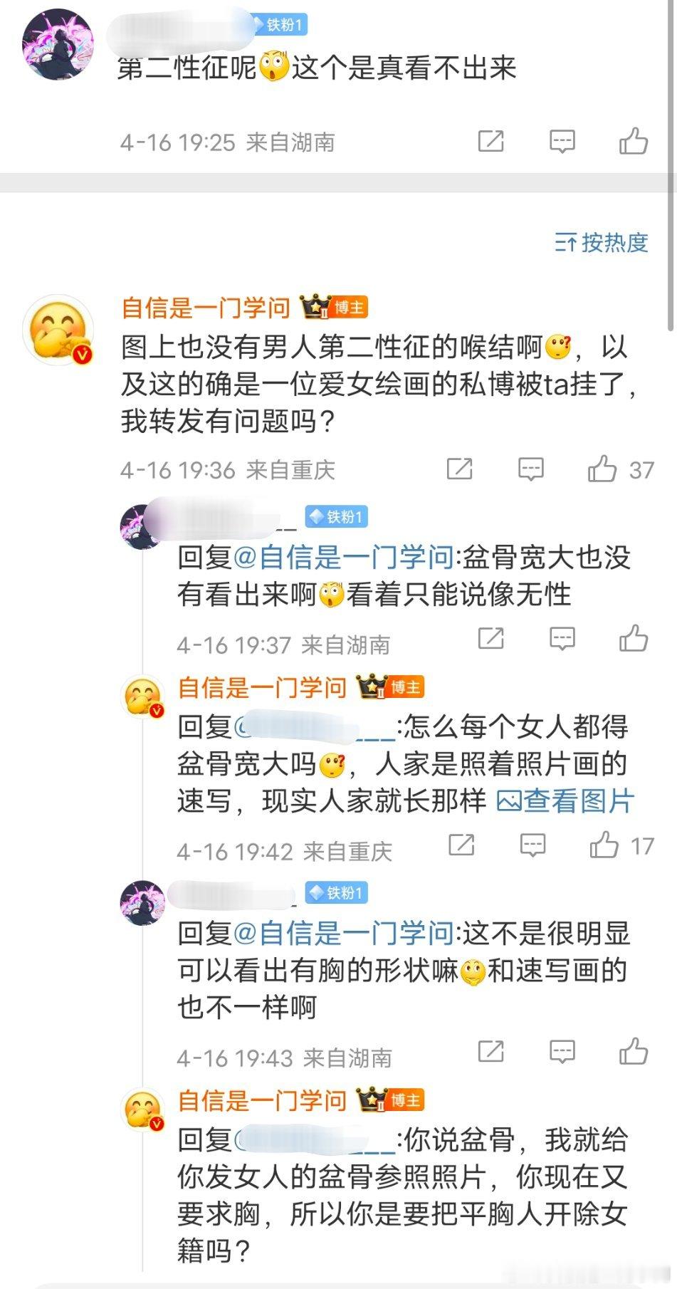 但是当爱女绘画作者画了一张与她们理念相反的图后:这没有胸,这不是女人。盆骨不够宽,这不是女人。这不是长发,看着不是女人。