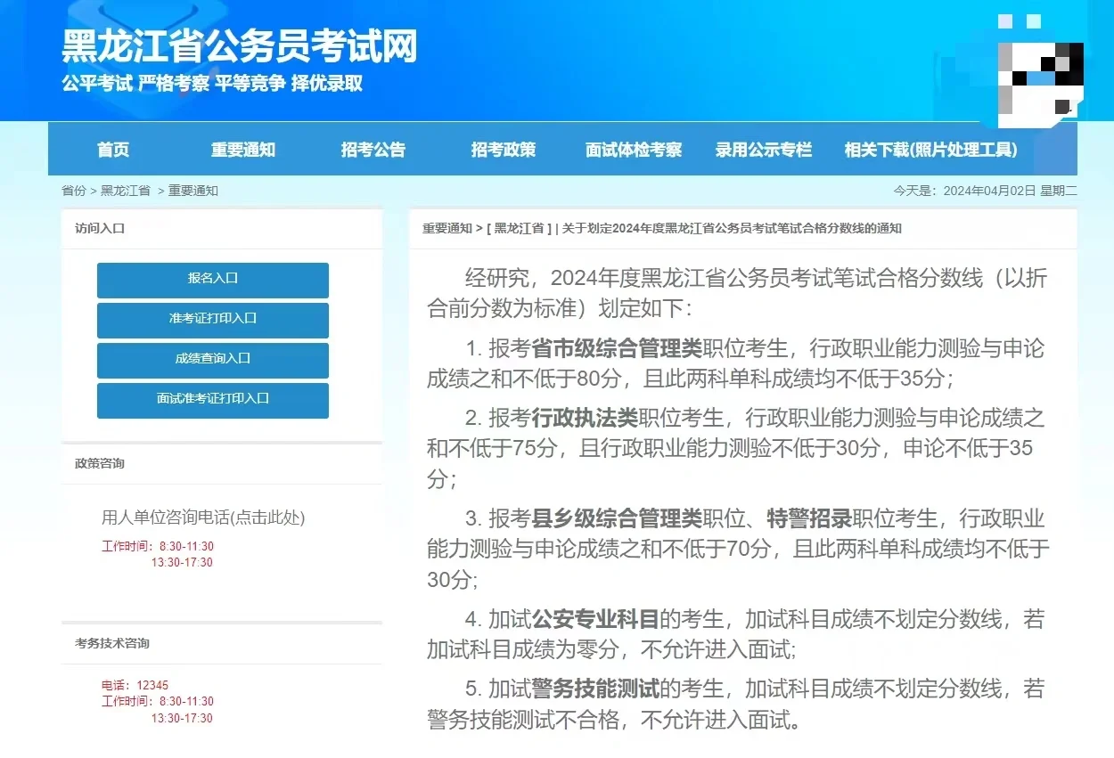 黑龙江省考笔试成绩已出,是第一个出笔试成绩的省份