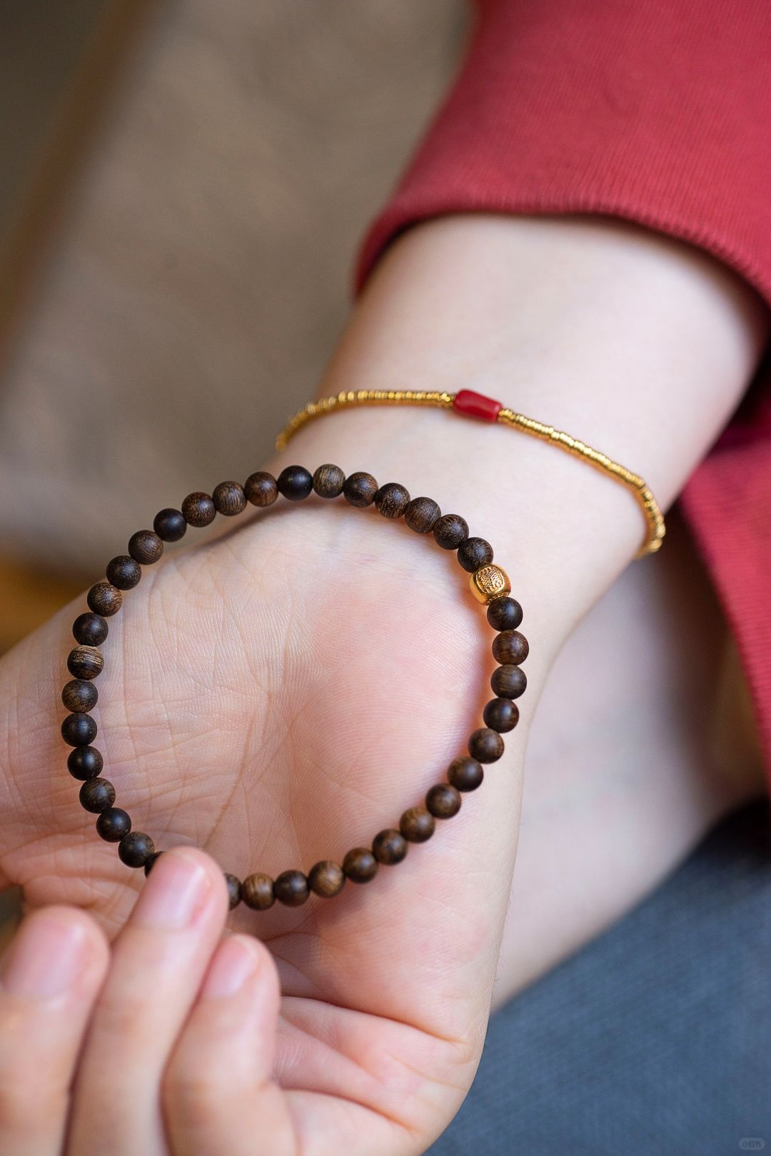 沉香镶嵌18k金【五条经文】 每条经文分别代表着守护你的平安、顺利、人缘、财运、健康。