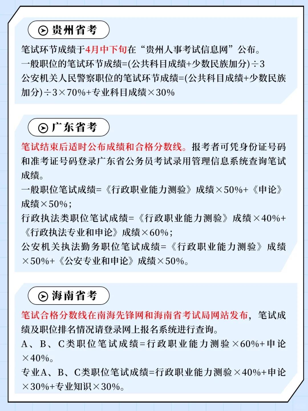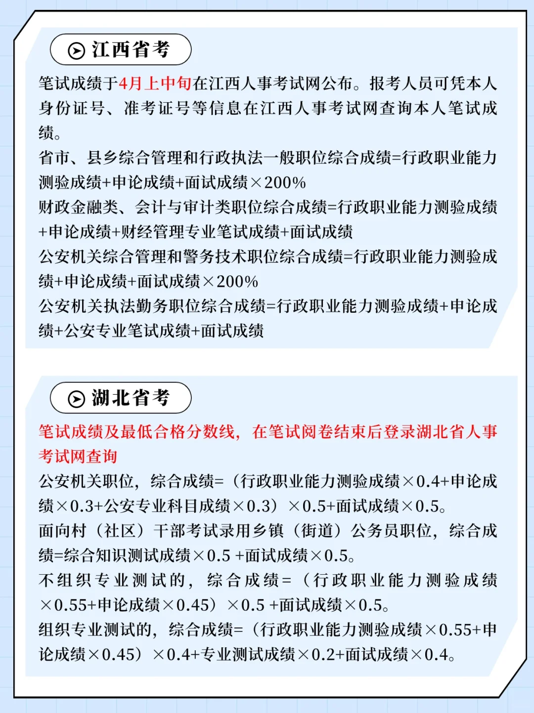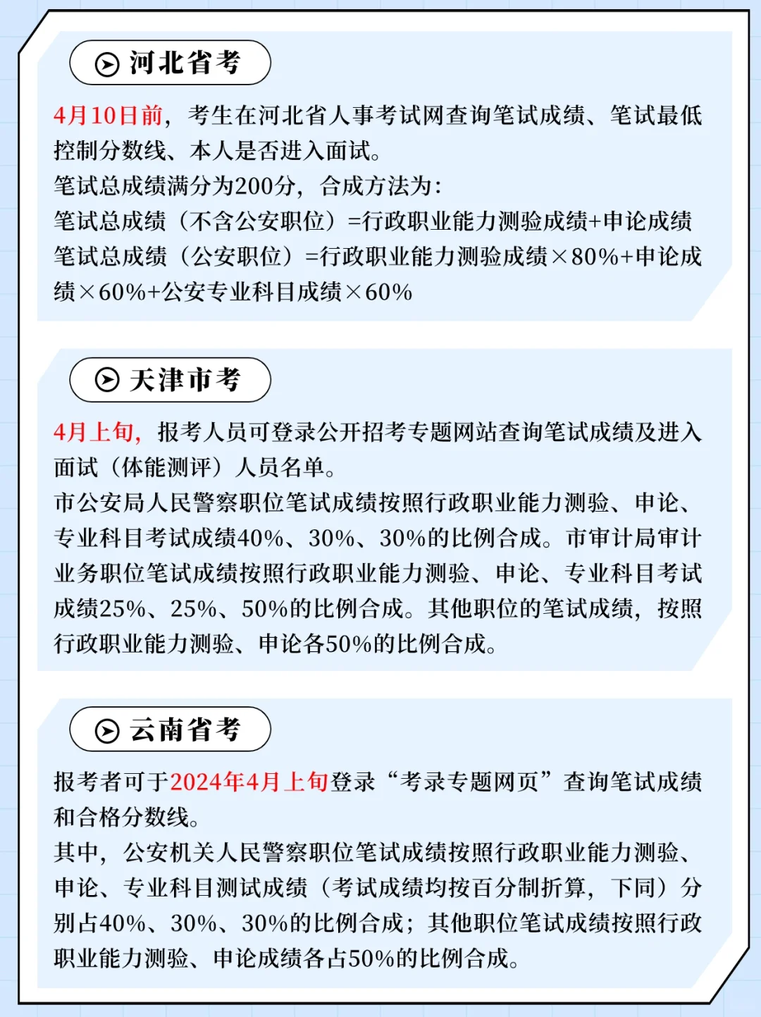 整理了所有省考省市笔试公告 最早4月10号出成绩