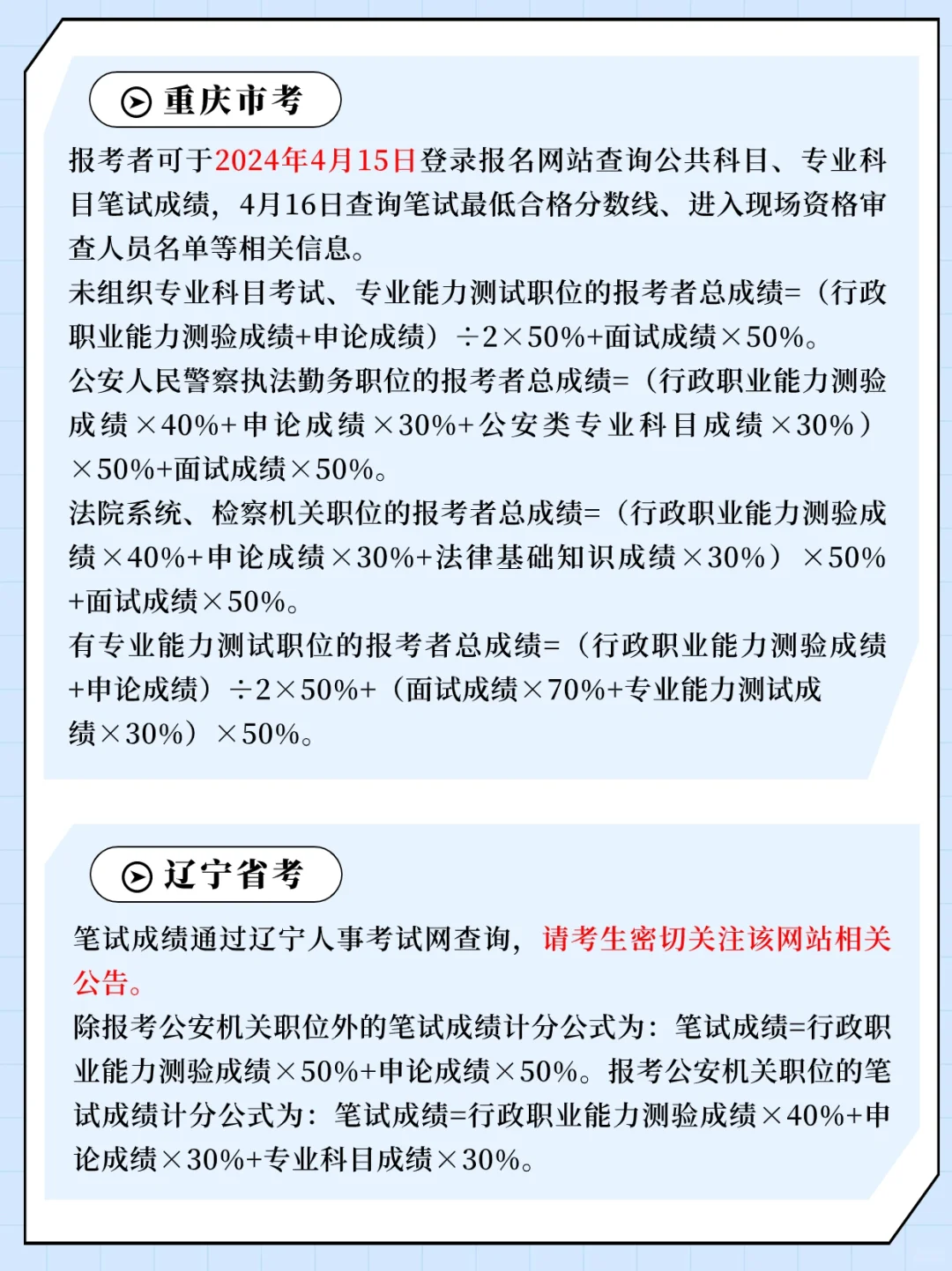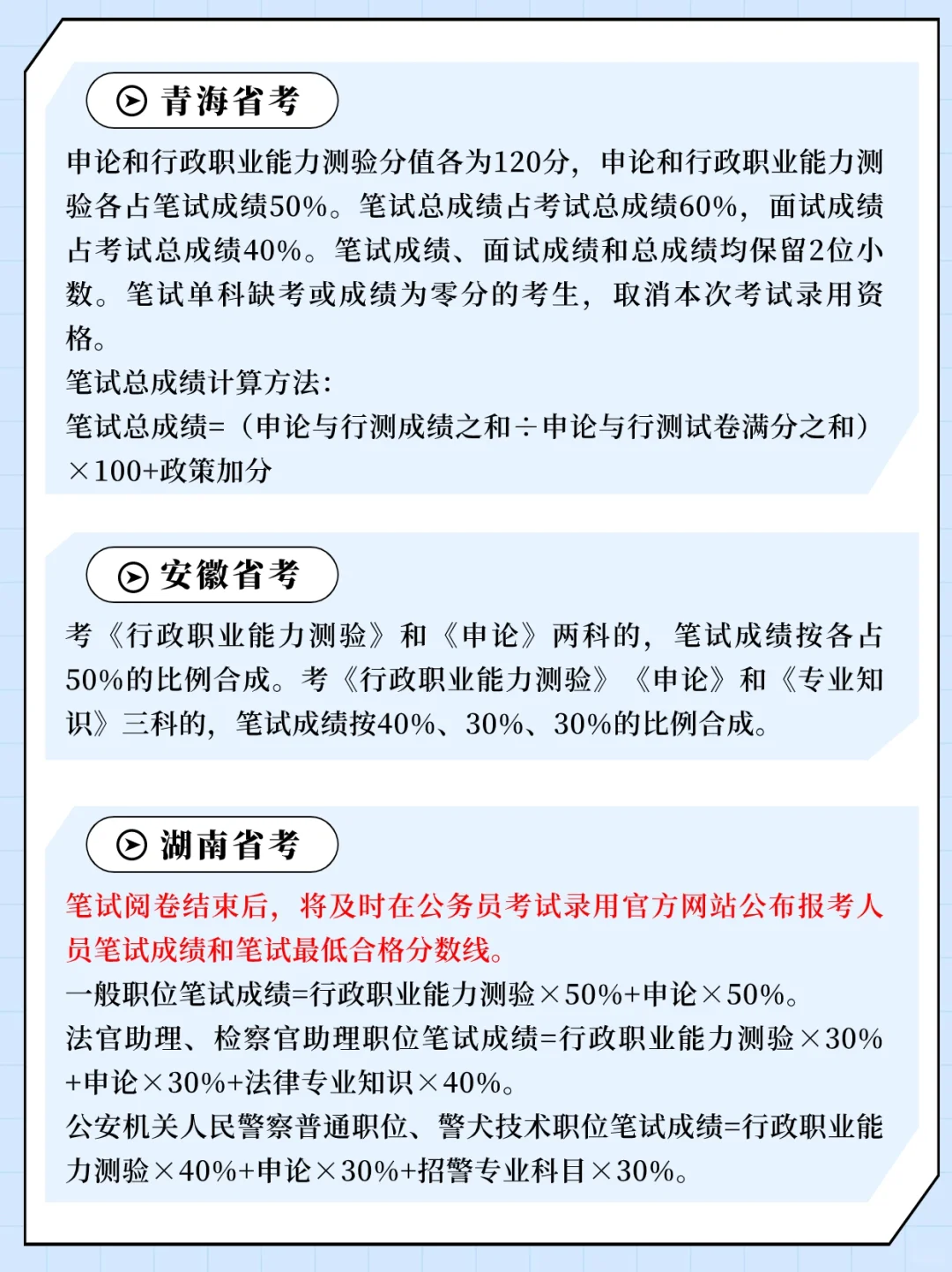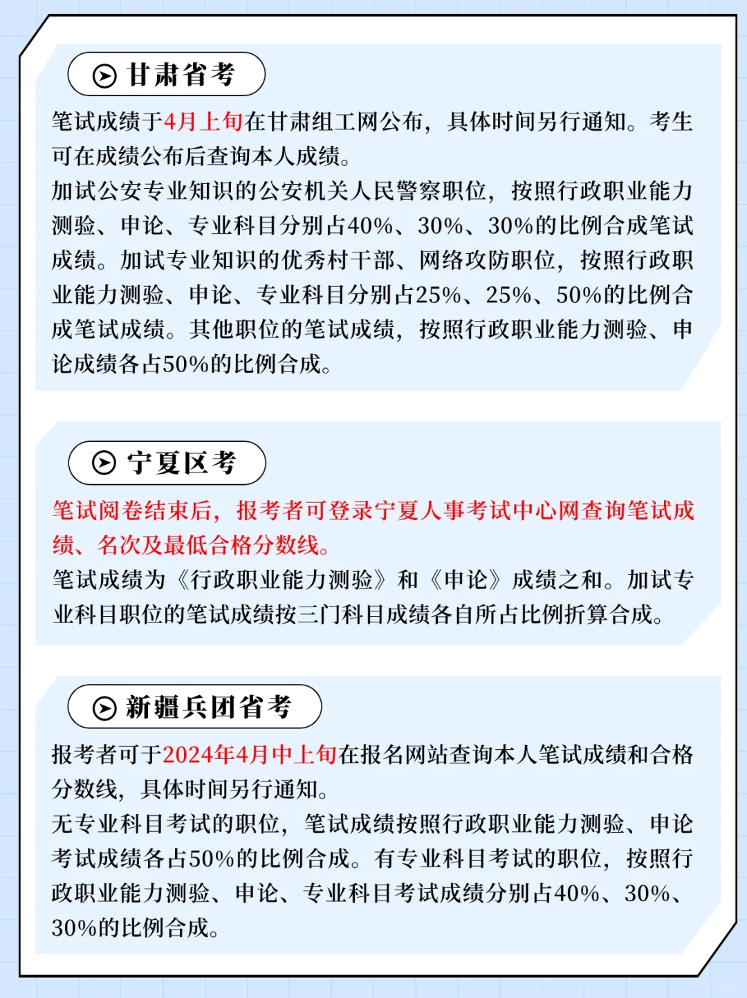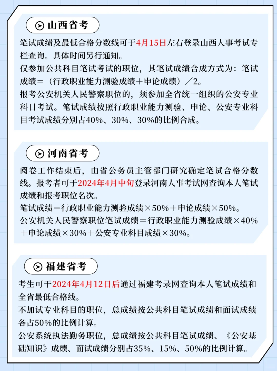 整理了所有省考省市笔试公告 最早4月10号出成绩