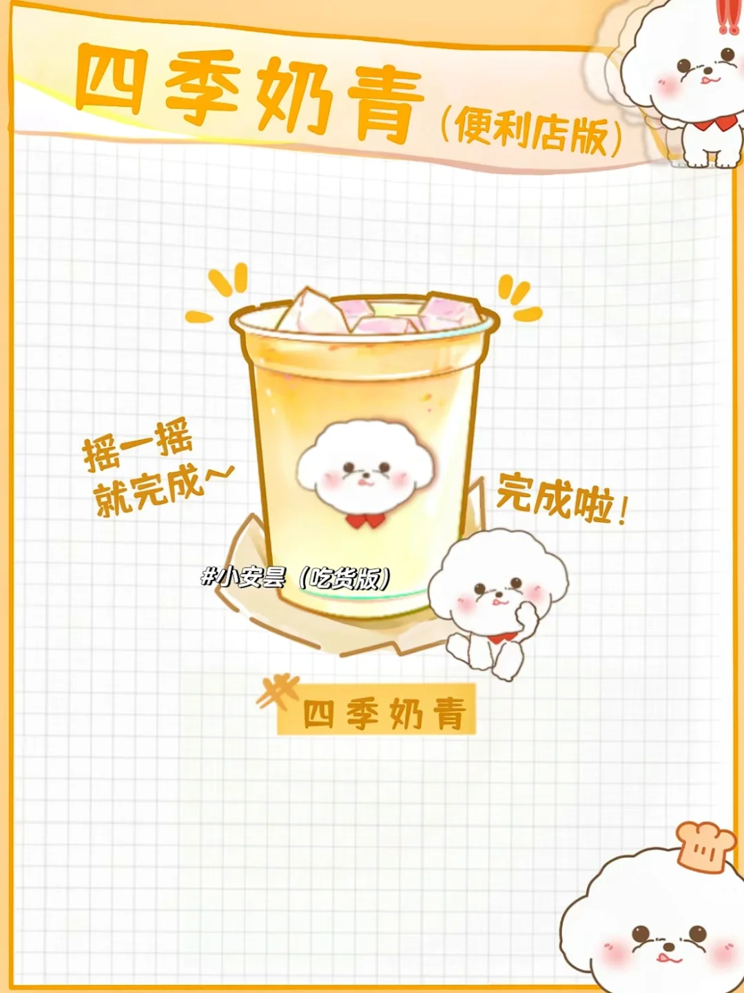🥤四季奶青🥛(便利店版) 🥣材料准备 300ml茉莉蜜茶 ➕100ml纯牛奶➕适量冰块 🥣制作步骤 1⃣️首先将茉莉蜜茶喝掉一部分,在瓶子里加入100ml纯牛奶,疯狂摇晃! 2⃣️最后可以再加点冰块,摇晃均匀,饮品就完成了!超级方便哇!