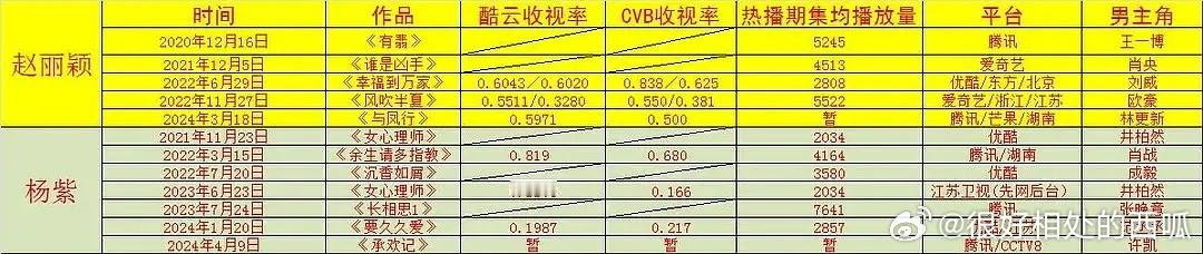 赵丽颖&杨紫收视率、奖项、播放量全方位对比