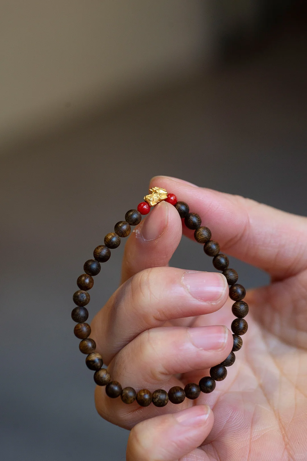 小金龙—龙年行大运🐲🐲🐲 沉香4mm 今年必备的一串手串,搭配南红珠红红火火。18k金小金龙,花香沁鼻,香韵醇厚富有层次感,必入的一款手串。。沉香 沉香手串 #文玩手串搭配