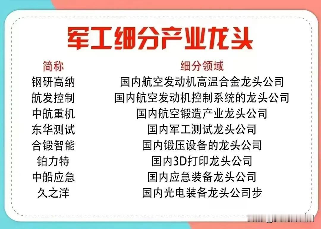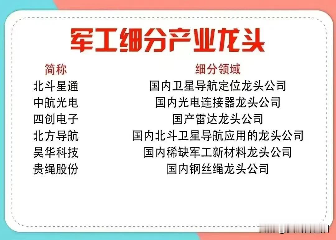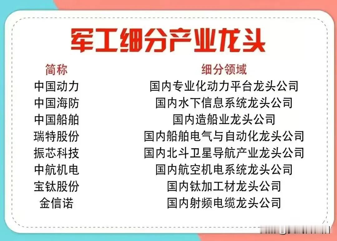 以色列伊朗冲突的升级,解放军信息支援部队的成立。这无疑都给A股军工企业带来了利好。A股军工细分产业龙头梳理,值得收藏研究。