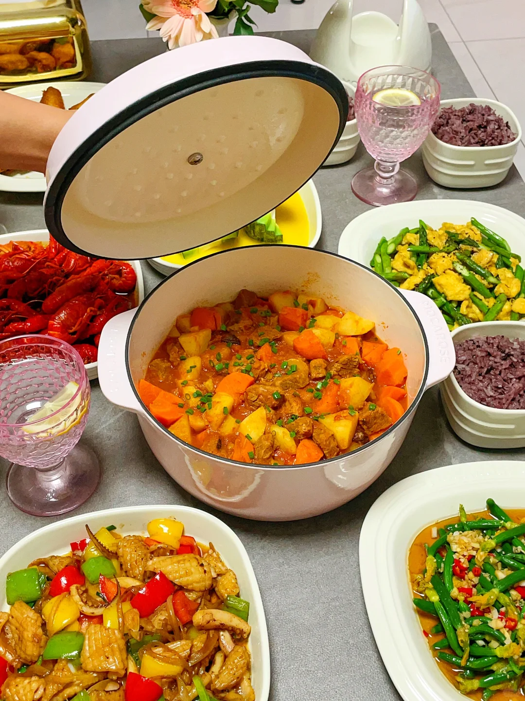 最近新入了摩卡色的珐琅锅,粉粉的🌸特适合春夏,珐琅锅体摸着就很温润,炖肉煲汤都好用。锅盖内部有锁水凝珠,能保留食物的原汁原味。速度也别砂锅快不少,出来的牛腩很软烂。珐琅锅清洗也很方便,百洁布一抹就还原如新了。
