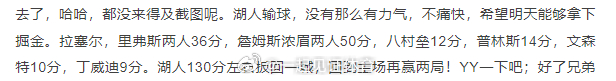 其实湖人最高领先的分数已经得到20分了,直播的时候粉丝一直都在问现在比分是什么情况,我紧张说到,湖人暂时是小比分领先的,有看比赛的兄弟就评论道,20分的分差你说是小比分。是不是小比分呢?第三节结束湖人领先的优势只有10分了,看着湖人的比赛,我脖子挂了一条毛巾,腋下的汗水不夸张的说,卫生纸都湿透了。结果还真他妈是意想不到的输了。输就输吧,输的太窝囊了吧。好吧。好吧。还能安慰自己呢。G1的时候湖人领先了2节比赛,是从第3节开始崩的。主要拉跨的球员是拉塞尔和里弗斯,昨晚直播的时候我也说了拉塞尔正常来说是会站起来的,真站不起来下半场就别上了,还真是上半场如神附体,三分7投6中,18分进账,下半场可好了,只有5分进账。怪是不能怪拉塞尔,没问题的。今天这场主要拉跨的人员(最起码是没有达到我这个粉丝的预期吧)里弗斯,我预期是18分,而小李今天只得了9分。太可惜了,可惜了浓眉拉塞尔詹姆斯表现这么好,没能拿下比赛,太消耗他们的成果了。